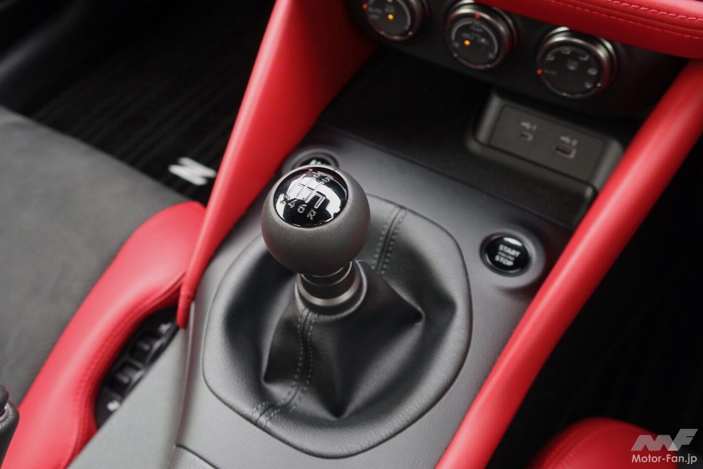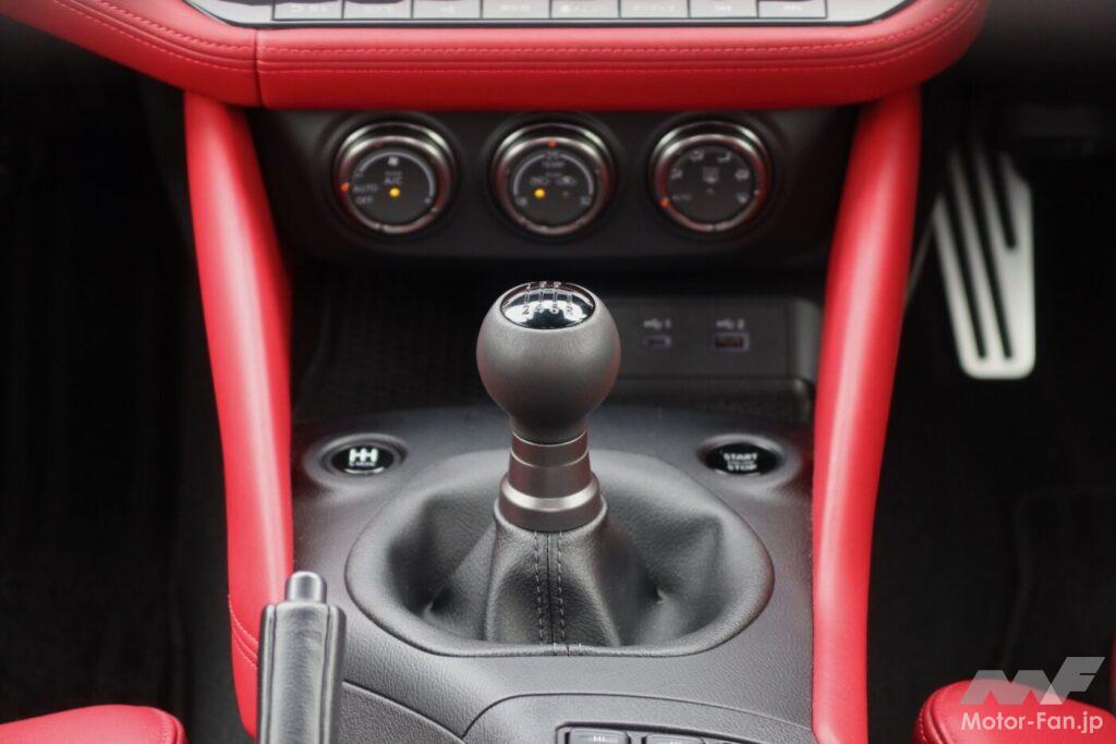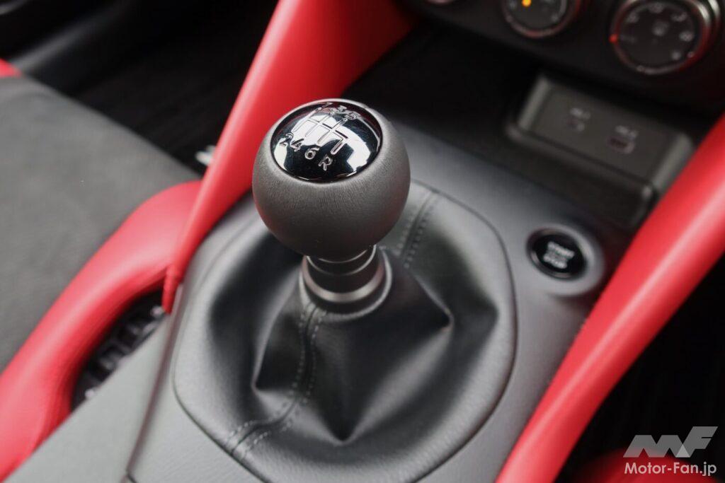 6速MTの本体は前型をほぼ流用しているというが、「ちょっと渋いというか、今までのシフトが『う〜ん』というところがあったので、山谷を変えました。もっとクイクイと気持ち良く走る演出をしたつもりです」と、田村氏は語る。