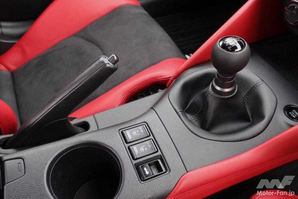 なお、MT仕様には、ダウンシフト時にエンジンの回転合わせをクルマ側が自動で行なう「MTシンクロレブコントロール」が装備されており、シフトレバーの左前方にあるスイッチでオンオフを切り換えることができる。この手の制御でダントツによくできているのはホンダ・シビック・タイプRで、「これならクルマ任せにしたほうがスムーズだし、気持ちいい」と感じる。