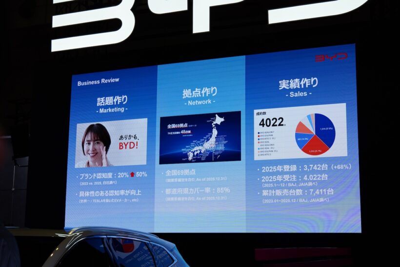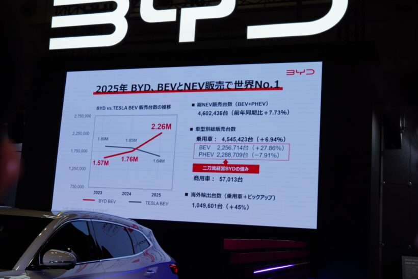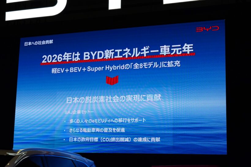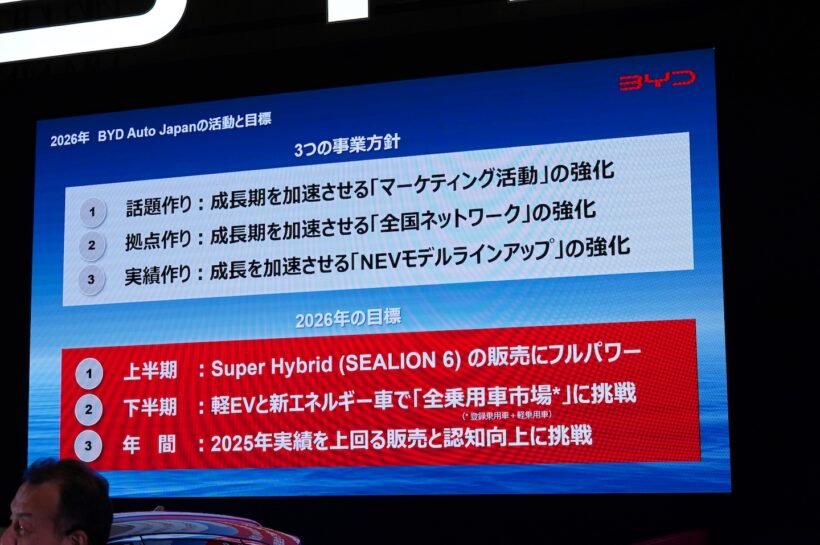 イベント BYDラッコの新情報がいろいろと明らかに! 気になる航続距離は約300km、日本発売は夏!!【東京オートサロン2026】【写真・31枚目】 BYDラッコ BYDラッコ BYDラッコ BYDラッコ BYDラッコ BYDラッコ BYDラッコ プレスカンファレンスで2026年の意気込みを語ったBYDオートジャパンの東福寺厚樹社長。 BYD ドルフィン BYD ATTO2 BYDシール6 BYDシーライオン6 BYD ATTO3 BYDラッコ この画像の記事を読む