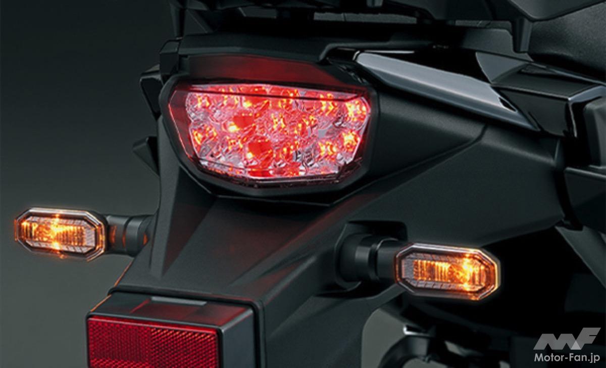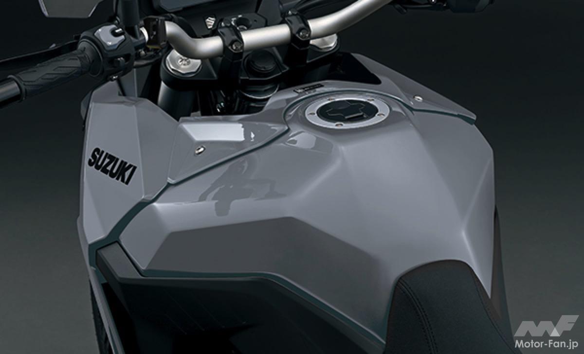 デザイン面では、Vストロームシリーズのアイデンティティを継承しながら、現代的なシャープなスタイリングを採用。精悍なカラーリングとともに、アドベンチャーバイクらしい堂々としたスタイリングが魅力となっている。