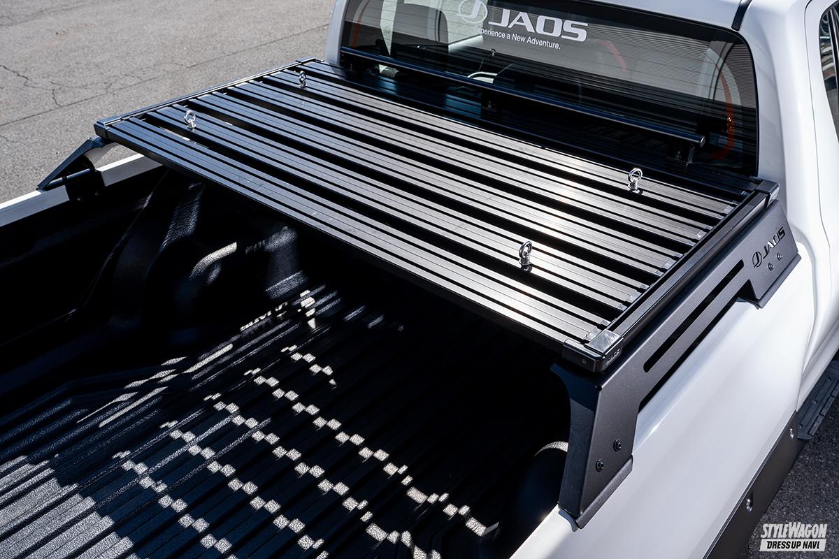 四駆アイテムの老舗として、数多くのハイラックス用アイテムを提供しているジャオス。標準車やGRスポーツそれぞれにアイテムを設定しているから、選択肢も幅広くチョイスでき、あんなパーツが欲しかったといった要望をしっかりとサポート。今回注目なのが、荷台にボルトオン装着するベッドラックだ。同社のアイテムで発売以来人気を集める「フラットラック」の流れを汲むアイテムでもあり、その製法やハードユースを想定したタフネスな作りなど、ハイラックスのユーティリティ性とビジュアルをしっかりアップしてくれる。