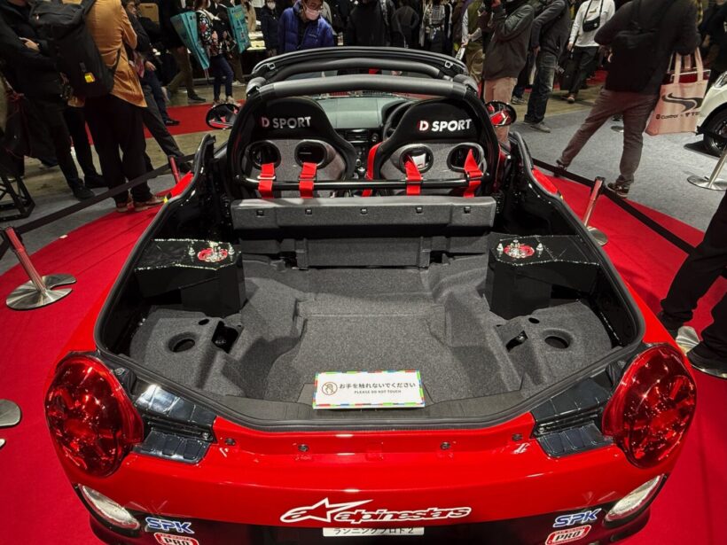 モーターショー ダイハツのK-OPEN、ランニングプロト2で見えた市販化!? フロントミッドシップの軽・後輪駆動スポーツの現状【東京オートサロン2026】【写真・31枚目】 JMS2025に展示されたK-OPEN ランニングプロト1 JMS時のランニングプロト1のエンジンルーム この画像の記事を読む