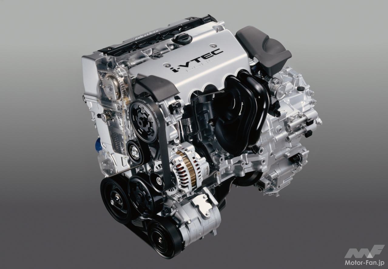アルミダイカストブロックを採用し、前方吸気・後方排気レイアウトを持つ。ボアピッチは旧モデルのF型エンジンと同じ94mmだが、補機類の配置を見直したことなどでエンジン長を短縮。ロアブロック構造として回転系を高剛性化している。駆動系は、低回転域では吸気側2バルブのうち1つのバルブをほぼ休止状態とするカム切換型可変バルブタイミングVTECと、連続的にバルブタイミングの位相を変化させるVTCを組み合わせた「DOHC i-VTEC」を採用した。カム位相を可変化してバルブオーバーラップ量を変化させることでEGR効果で燃費を向上させたり、吸気慣性効果を得るよう吸気バルブの閉じ角を制御することなどが可能に。高出力版や直噴版(K20B)など、派生エンジンも多い。