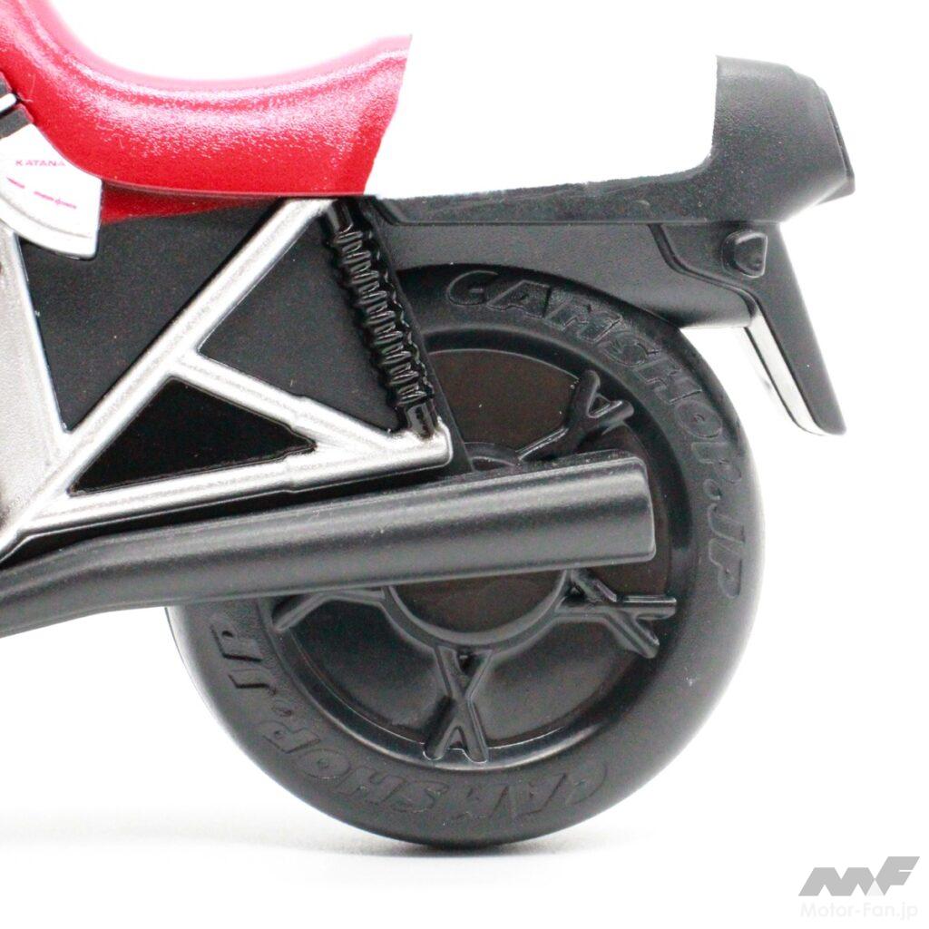 機能面においてもただの雑貨ではない工夫が施されている。前輪部分がステンレス製のピザカッターとして実用的に使えるだけでなく、深みのあるレッドカラーが料理シーンにも映える秀逸なビジュアルアクセントとなる。単なる調理器具としての役割を超えて、「いつでもKATANAと共にありたい」というファンの想いを具現化するアイテムとして設計されている点がユニークだ。製品は食洗機や乾燥機には非対応となるが、手に取る喜びと見せる楽しさを両立した逸品に仕上がっている。