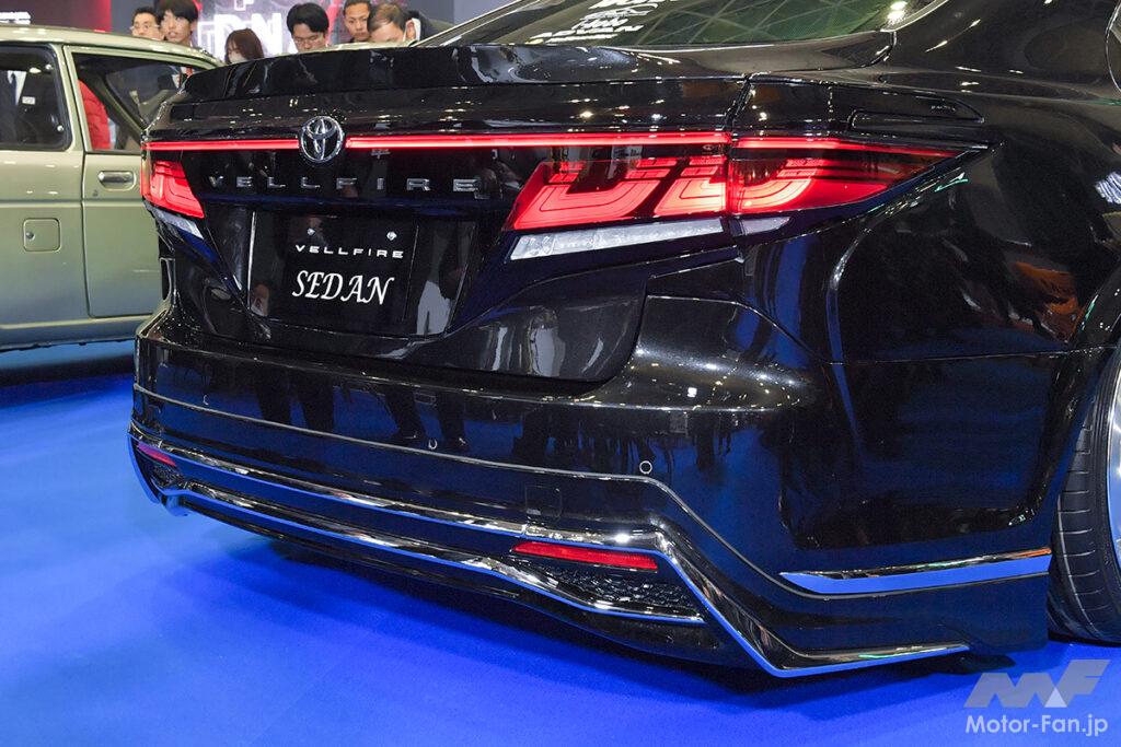 一方リアまわりでは、バンパーを50系のLS500純正に、テールレンズをヴェルファイア純正にスイッチ。40系/50系の各LS、そしてヴェル純正パーツが喧嘩しないよう緻密に溶接と、約半年間かけて入念に制作しただけのことはある、超力作となっていた。