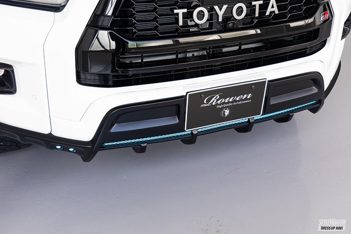 GRスポーツを一段とアグレッシブにイメチェンする、スポーティエアロとして企画したROWEN(ロェン)。純正が持つ無骨感をさらに高めつつ、都心にもしっくりと馴染むアーバン感も意識したというフロントアーマーを筆頭に、SUVカスタムで得た知見を元に開発したボンネットフードカバーなど、展開パーツは少数だがインパクトの強いカスタムを構築可能だ。エアロはすべて、FRPのほか、リアルカーボンも選べる。サイトで動画公開中!