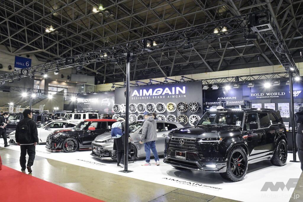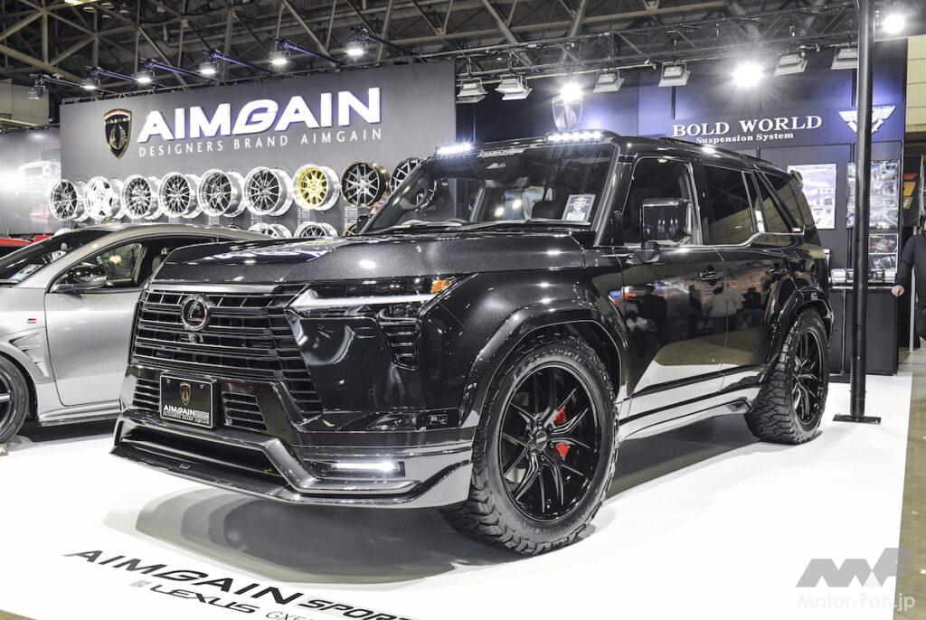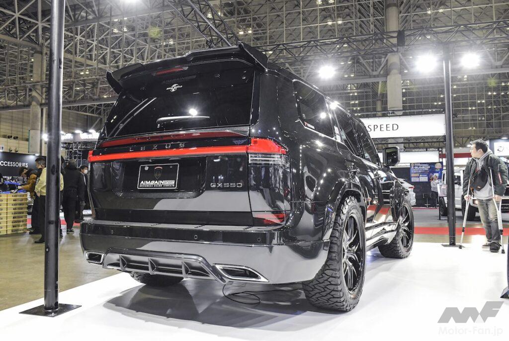 エイムゲインスポーツのレクサスGX550もオートサロン会場でお披露目に。純正シルエットを崩すことなくさらりと躍動感をプラスできるのが魅力。フロント両端のカナード風造形がスポーティだ。
