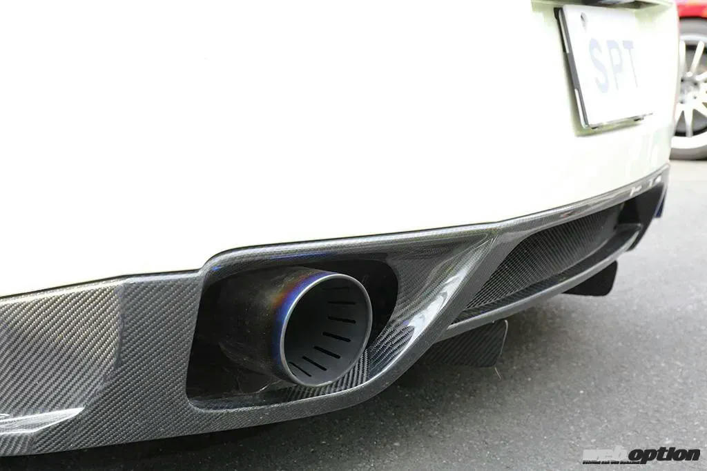 エクステリアはカンサイサービスのオリジナルで武装。構成はフロントリップタイプ2+試作アンダーパネル、カナード、サイドステップ、リヤアンダー、リヤディフューザー、リヤウイング、FRワイドフェンダー、セイボン製ボンネットだ。サーキットでのダウンフォース増強を狙ったセットアップである。