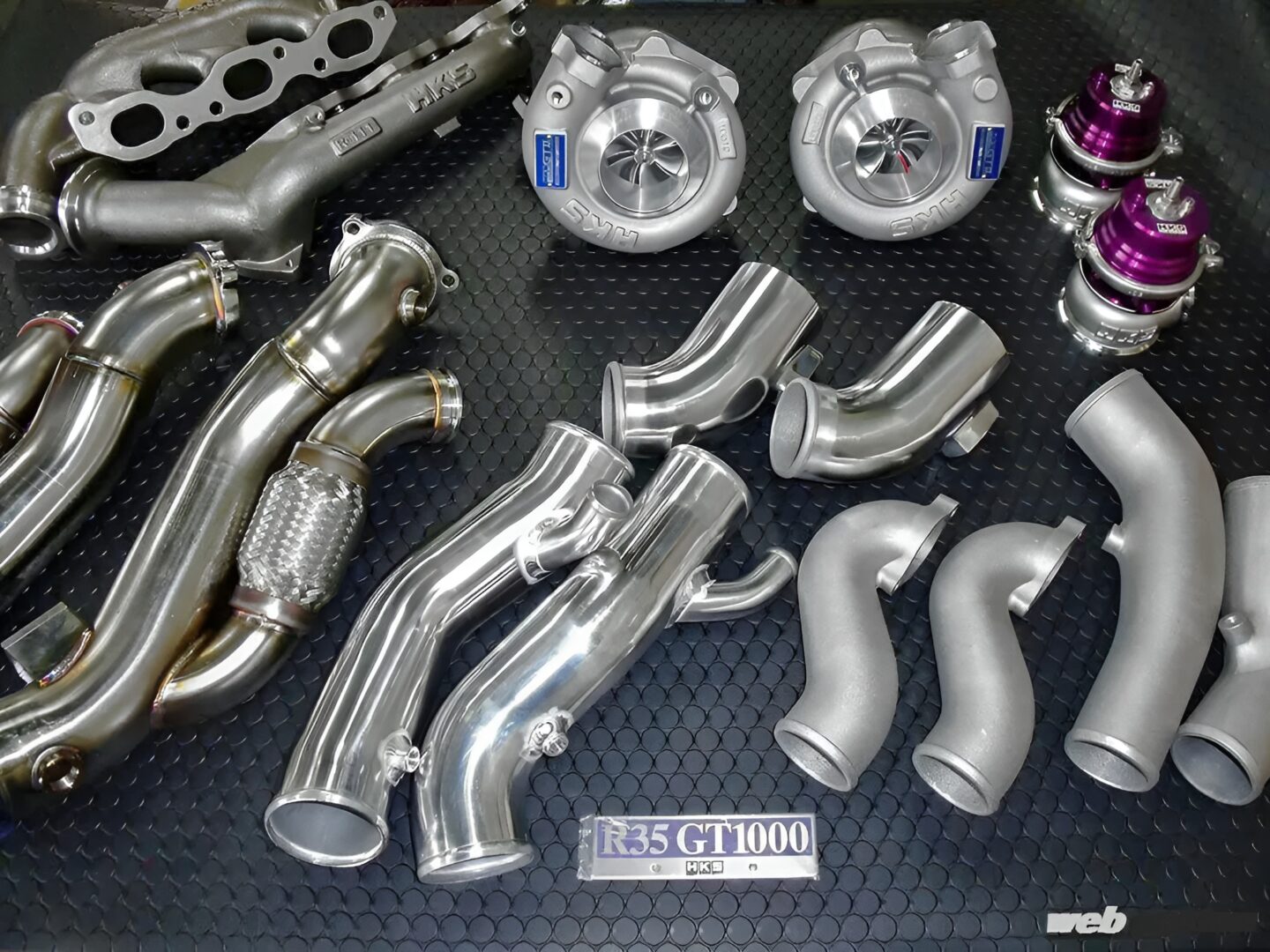 タービンはHKSのGT1000フルタービンキットで、インタークーラーやパイピング類もキット付属品を装着。設定ブースト圧は1.8キロで1000ps&120kgmという強烈なパワーを引き出しているが、その他のパートも含めて全て市販パーツで構築しており、ユーザーカーにも再現可能な1000psとされている。