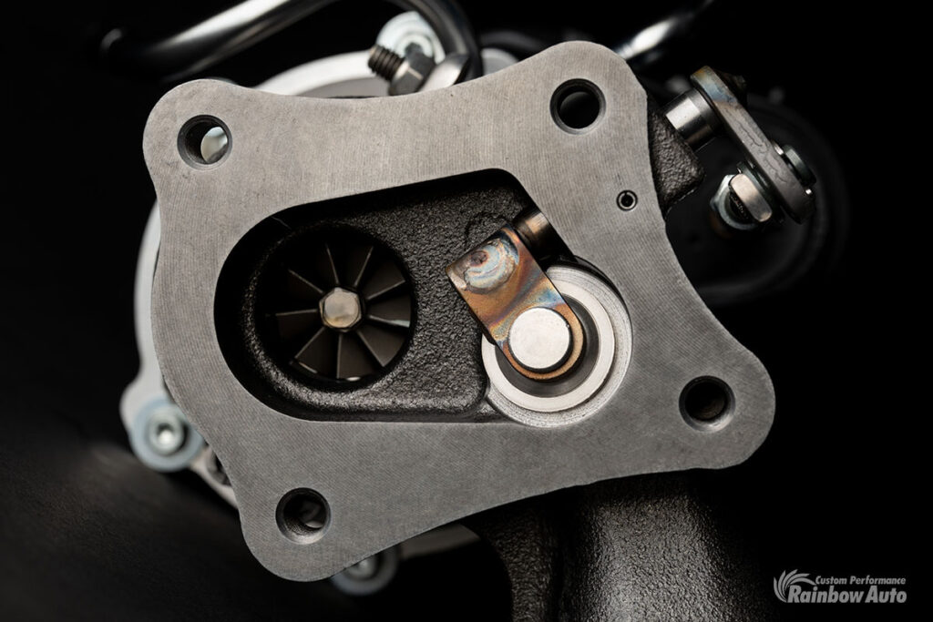 タービンは純正ベースのハイフロー仕様で、完全ポン付けで90psオーバーを狙える風量を実現。レインボーオートが用意する専用ECUと組み合わせることで、低速域で鋭くブーストが立ち上がり、トップエンド領域まで大パワーが追従するフィーリングが獲得できる。