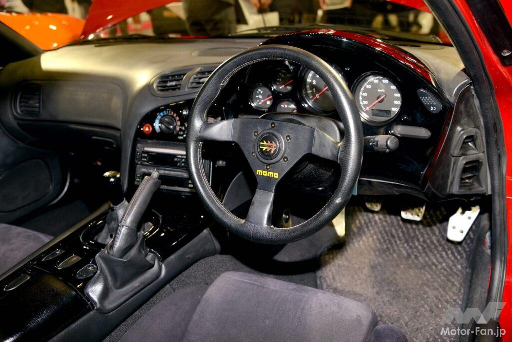 もちろん16インチのアルミホイールも純正のもの。中古ホイールを入手してボディ同様に古い塗装を剥離、再塗装して仕上げてある。またインテリアも純正にこだわって手直しされている。残念ながらステアリングホイールはMOMO製ではあるが、FD3Sのノーマルインテリアを再現している。