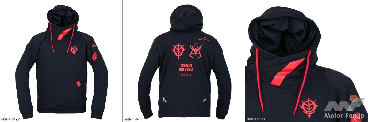 KUSHITANIが独自に開発したダイヤ状の凹凸感のある肉厚な綿タッチの素材を使用。裏面にも凹凸を設け、肌に触れる面積を少なくすることで、より良い着心地を実現している。人気のフードデザインで、『機動戦士ガンダム』のシャアをイメージしたブラックと、『機動戦士ガンダムUC』のユニコーンガンダムのサイコフレームをイメージしたホワイトの2色展開。価格は26,400円(税込)で、サイズはMからXLまで展開されている。