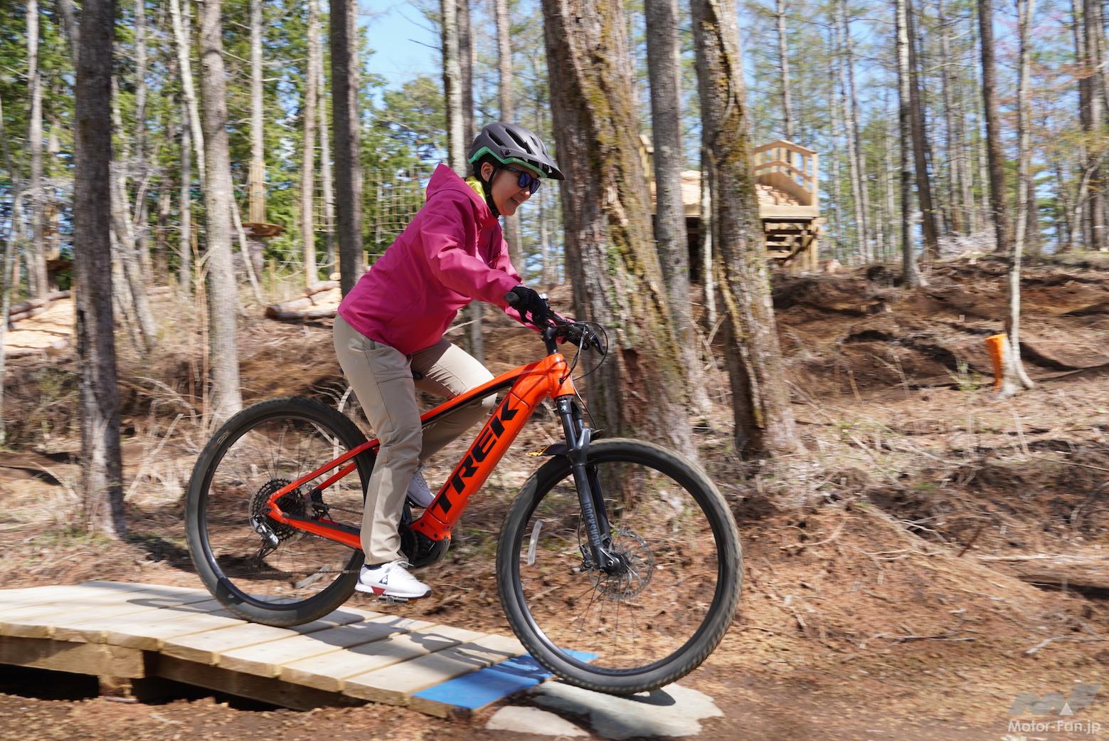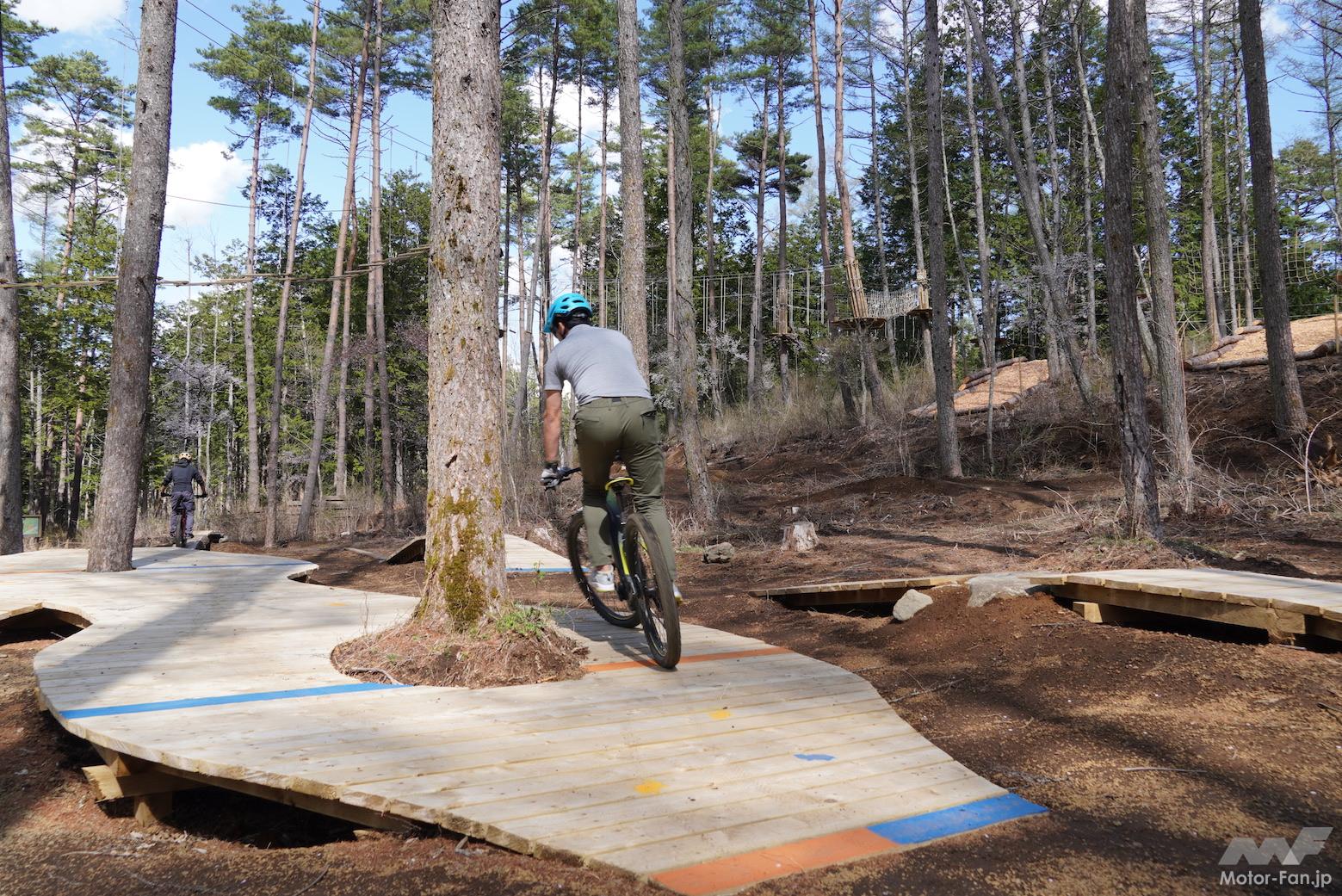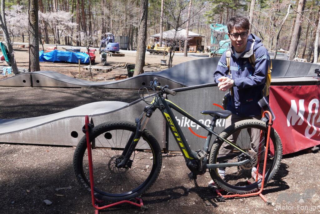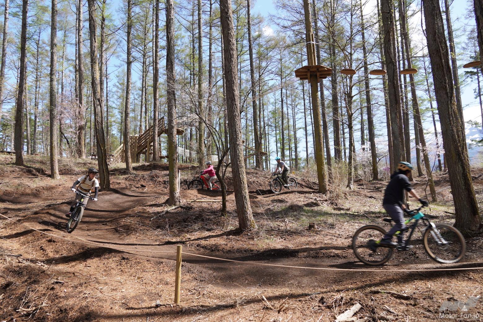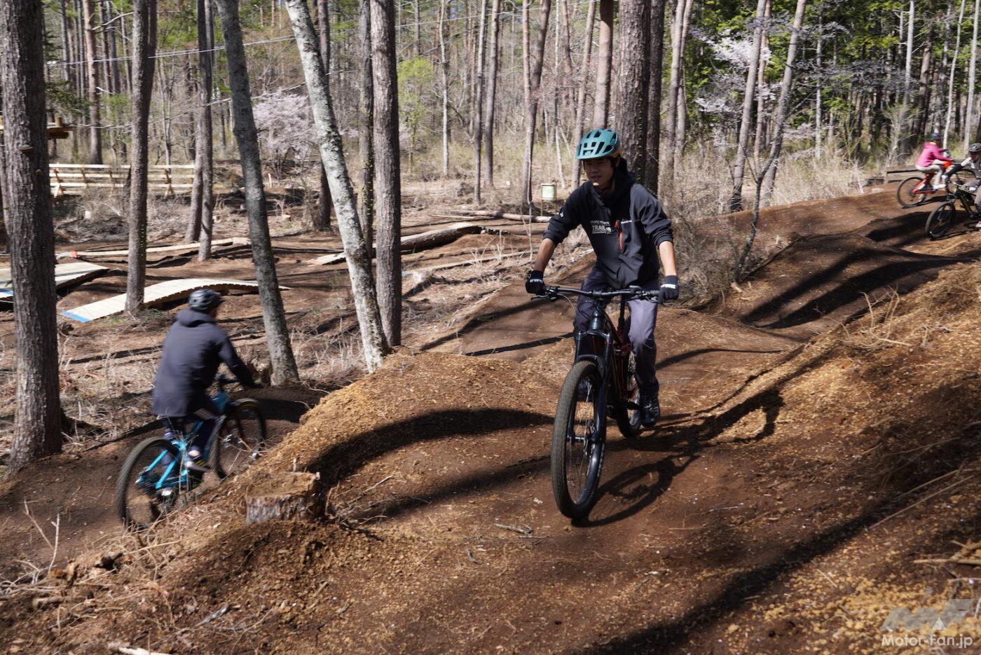 今回、試乗取材が行われたのは、中央高速河口湖インターからほど近い「トレイルアドベンチャー・フジ」という施設。テクニカルで起伏に富んだトレイルコースが多数用意され、持ち込みはもちろん、MTBやeMTBなどをレンタルして楽しむことができる本格的な専用コースだ。ICからのアクセスの良さや、富士の麓に抱かれたローケーションの良さは特に印象的だった。