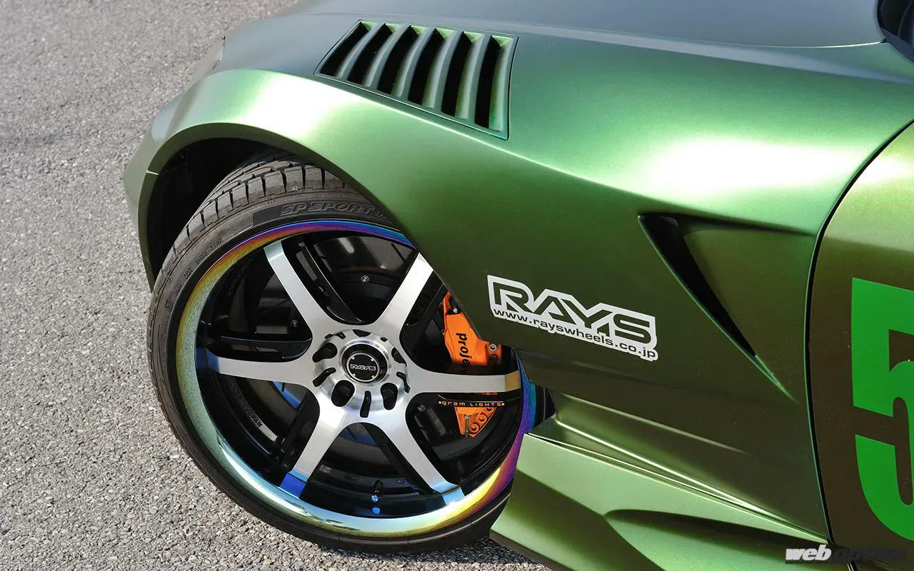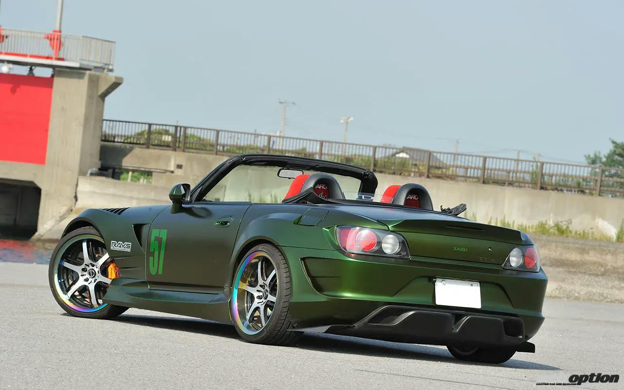なお、デモカーは“リーフグリーンハーフマット”という半光沢グリーン仕上げとしてアーミーテイストを演出しているが、これは庄司さんが機動戦士ガンダムに登場するモビルスーツ「ザク」にインスパイヤされたからだ。「完成した時なんとなくザクっぽいなと思ってね」と庄司さん。
