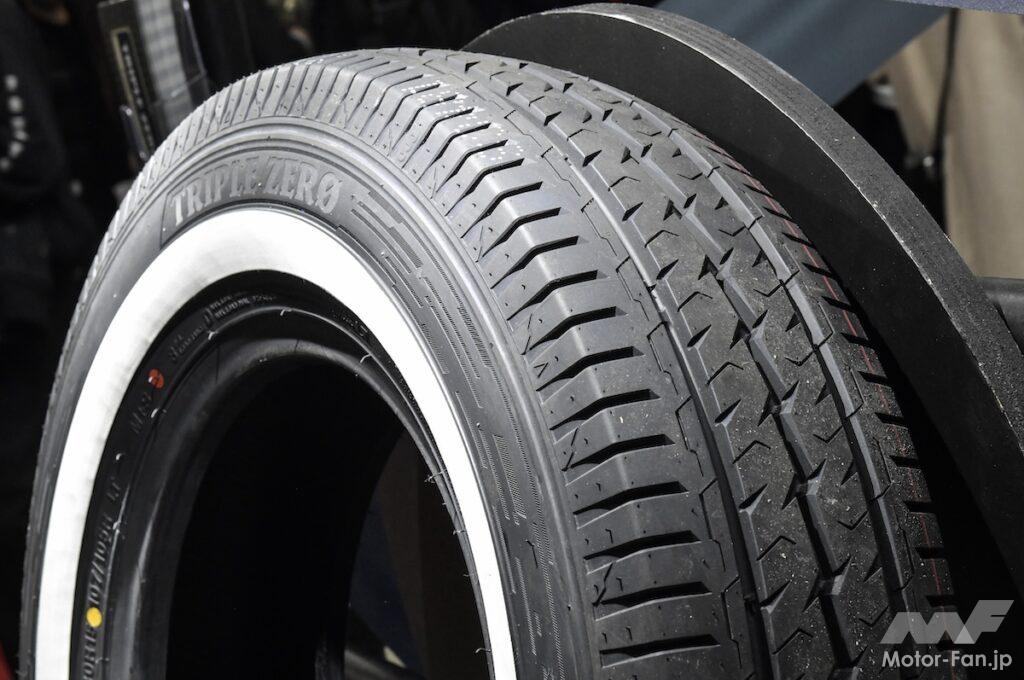 クラシカルなテイストをダイレクトに引き上げるホワイトリボン仕様のトリプルゼロ。12~16インチの全4サイズで、ハイエースから軽カー、軽トラまでをカバー可。