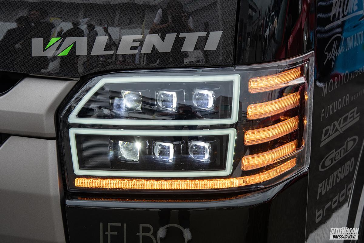 ハイエースユーザーならチェックしておきたい1台がモーターファンフェスタ2024の「ヴァレンティ」ブースに登場。最新デモカーであるこのハイエースには、オリジナルのホイール、タイヤ、そしてヴァレンティといえばのヒカリモノがセットアップされている。
