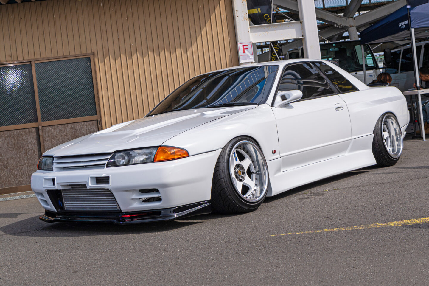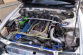 スタイリングに並々ならぬ拘りを感じるが、ドリフト仕様ということでパワーチューニングも抜かりなし。エンジンはRB20DETのまま、GT-R用6連スロットルやS&Aオートクリエイトのベルヌーイエキマニ、HKSのGT2540タービンをセット。制御は純正ECUに専用基板を追加してフルコンに近いマネージメントを行えるNISTUNEが担い、ブースト1.2キロ時に320psを発生させる。