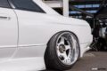 フロントフェンダーはヤナック製をベースに、さらに20mm程度の拡幅を行なったワンオフモデル。トータルでのワイド幅は片側で60mm近いという。かなりの低車高ではあるが、切れ角をアップさせたショートナックル仕様でも問題なく全切りできる形状とされている。