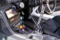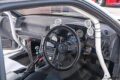 延長サイドブレーキレバーがドリ車感を放つインテリア。リヤは内装まで取り外した上でボディと同色のペイントが施される。