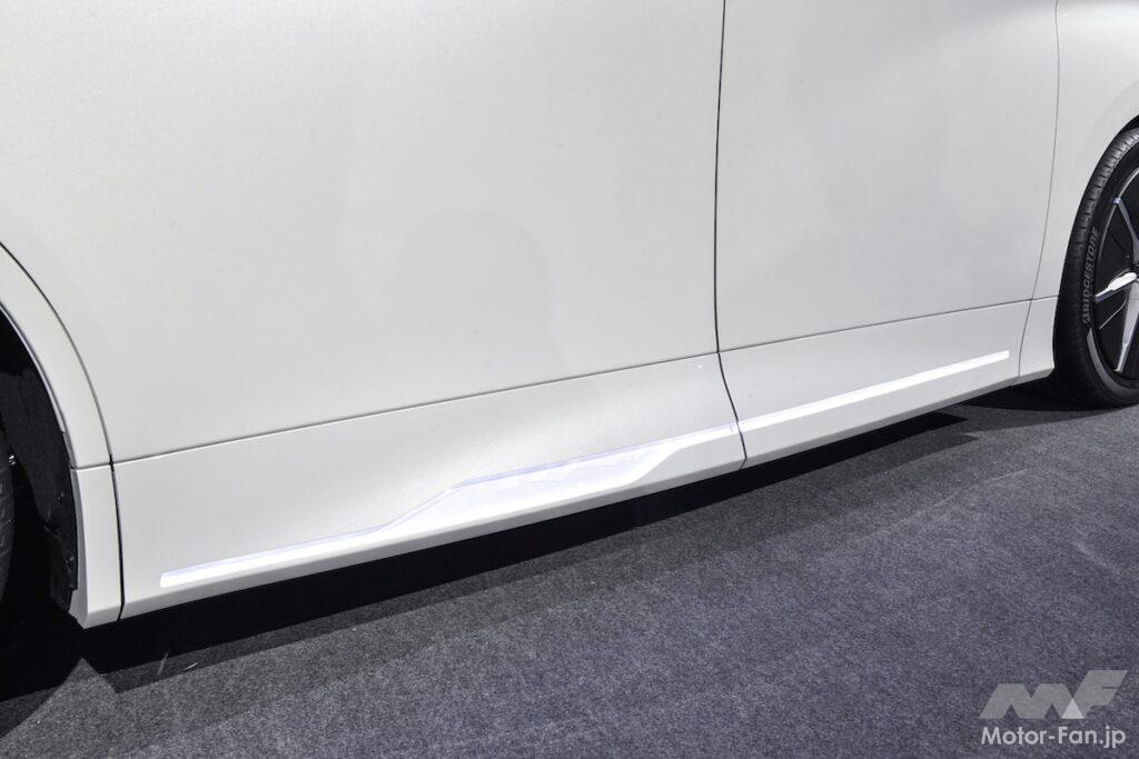 またモデリスタと言えばメッキ加飾が定番なのだが、このコンセプトではあえてそれを排除。代わりにエアロのボトムラインにデザインされたラインを組み入れ、そこをLEDの光で浮かび上がらせるというこれまた未来なアレンジを投入。新たな造形に新たなLEDの使い方など、どこを取っても新時代カスタムの参考になる一台に仕上がっている。