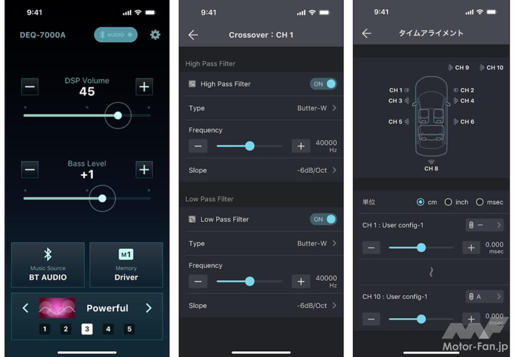 DSPは純正カーオーディオのスピーカー出力から経由させることで、音場にあわせてスピーカー特性を整えることが可能となる。また、最も注目されるのは純正ではあまり導入されていない、タイムアライメントのセッティングを施して、自分専用の極上の音場を創り出すこともできる。