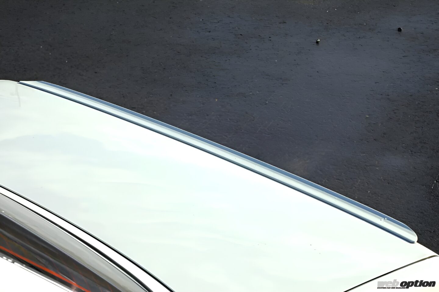 トランクリッドに装着された控えめなリヤリップスポイラー。純正オプション品とも、イルムシャー標準品とも違う独自の形状となる。つまり、いすゞはアスカ用として少なくとも3種類のリヤスポイラーを用意していたということだ。
