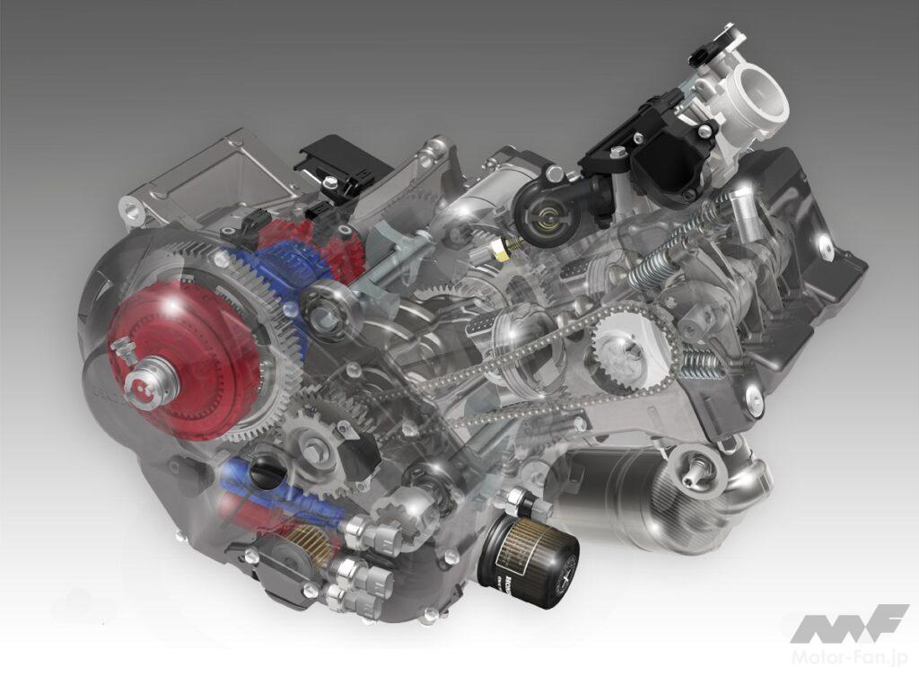 2025年型は主にフロントカウルのデザインを変更するとともに、スクリーンおよび外装の一部にバイオエンジニアリングプラスチック“DURABIO”を新採用。前後ホイールも新設計となり、車両価格はMT、DCTとも7万9200円アップした。