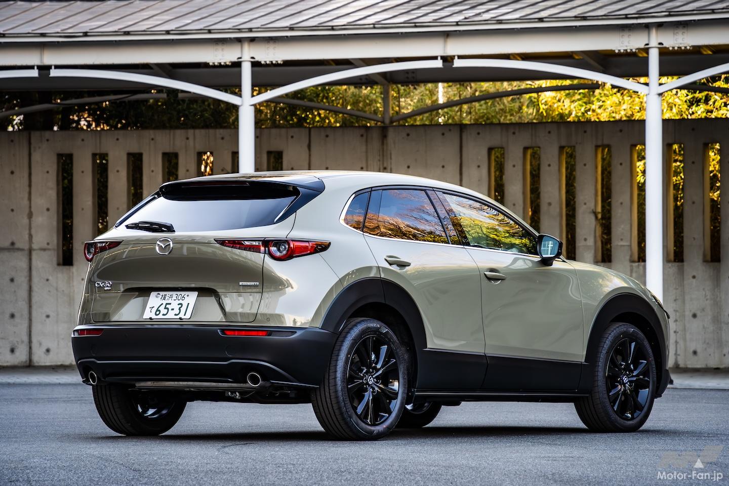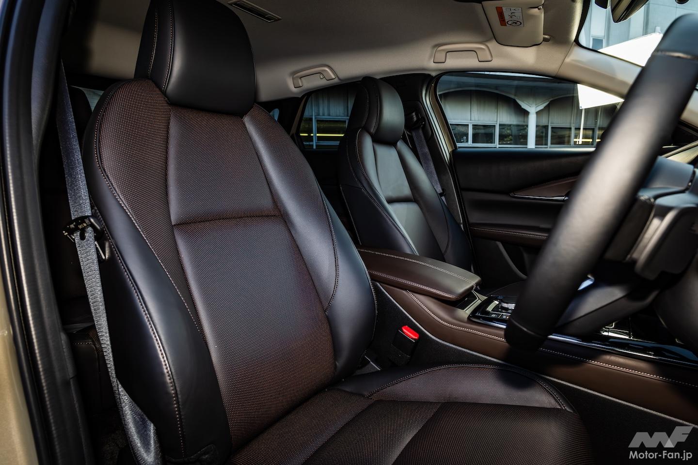 CX-30に追加されたXD Drive Editionはブラック基調のエクステリアアイテムに加えて、レザーシート(黒革 or 白革)でインテリアも上質な雰囲気に包まれている。また、CX-30に搭載される1.8Lディーゼルエンジンは燃料噴射制御の見直しなどが行われ、燃費向上が図られたのもトピックだ(FFは19.5km/L→20.2km/L、4WDは18.7km/L→19.2km/L)。
