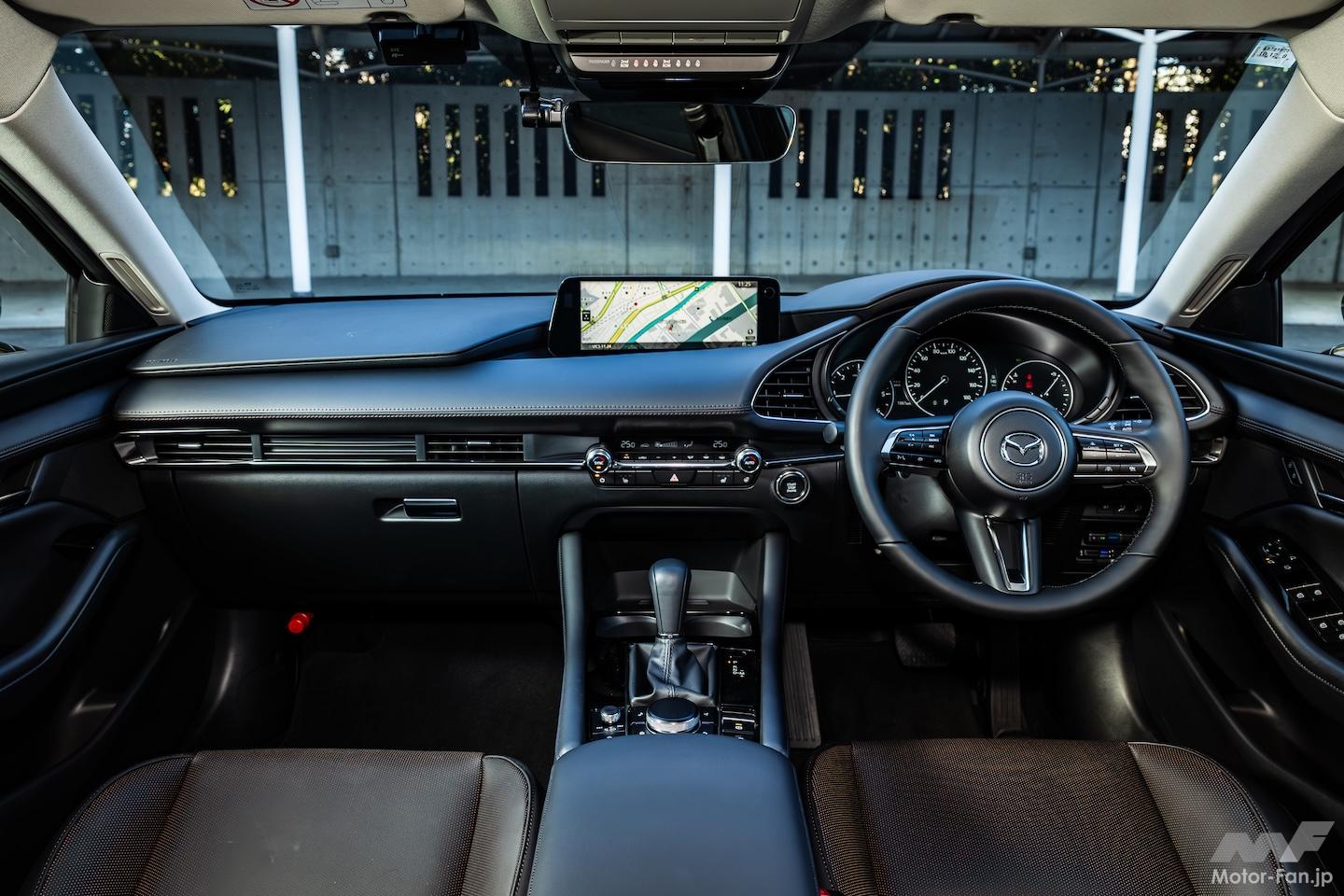 Cセグメントのクラスでは屈指の美しいスタイルの持ち主であるマツダ3でもXD Drive Editionは選択可能だ。装備内容はCX-30と同様だが、ファストバックではレザーシートが黒革だけではなく、赤革も選べるのが特徴。また、XD Drive Editionの追加と同じタイミングでマツダ3(とCX-30)ではマツダコネクトの操作性改善も実施され、10.25インチのセンターディスプレイではApple CarPlay/Android Autoのタッチパネル機能が追加された。