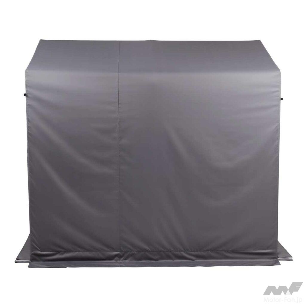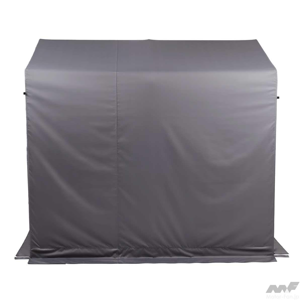 このガレージは、ベランダの下やカーポートの軒先など、限られたスペースでも場所を取らずにスッキリ収納。直射日光や雨、ホコリをしっかりブロックし、大切なバイクや自転車、加えてタイヤなどのパーツ類もしっかりガード。外からの視線を遮ることで、防犯対策としての効果も期待できる。