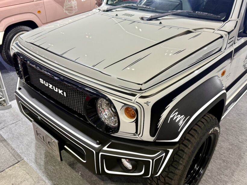 そんなアニメ塗りを、クルマに取り入れてしまったのが、「ヘリテージ」ブランドなどのパーツでお馴染みの「ケーエルシージャパン」だ。スズキ「ジムニー ノマド」のホワイトのボディを活かして、アニメ塗りを行っている。