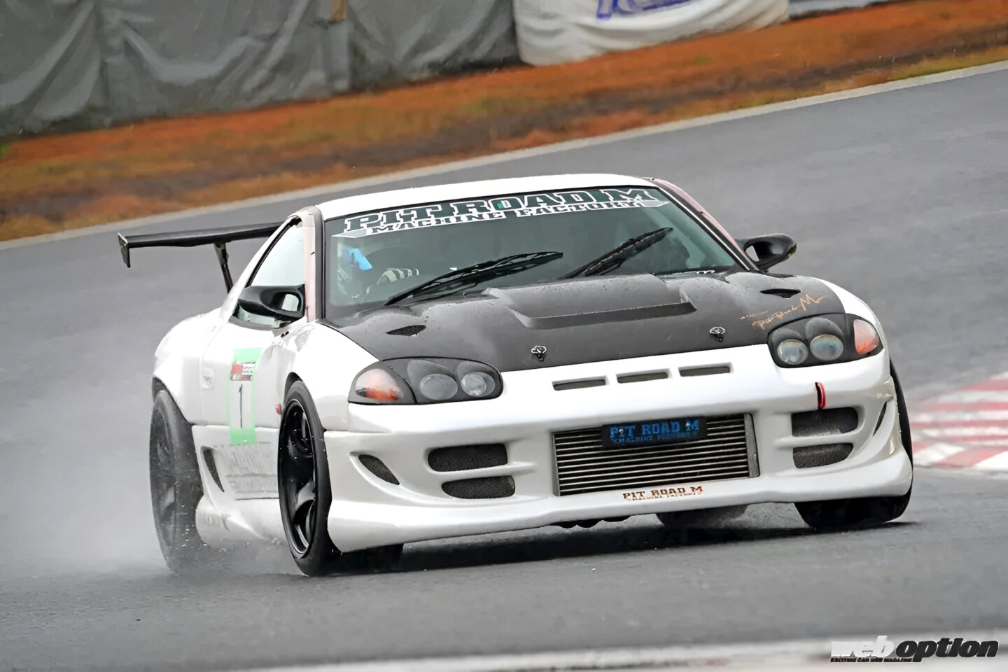 エクステリアはピットロードのボディキットでフル武装。テール周りをダッジ・ステルス(北米仕様のGTO)化することで車種不明感を演出しているのもポイントだ。