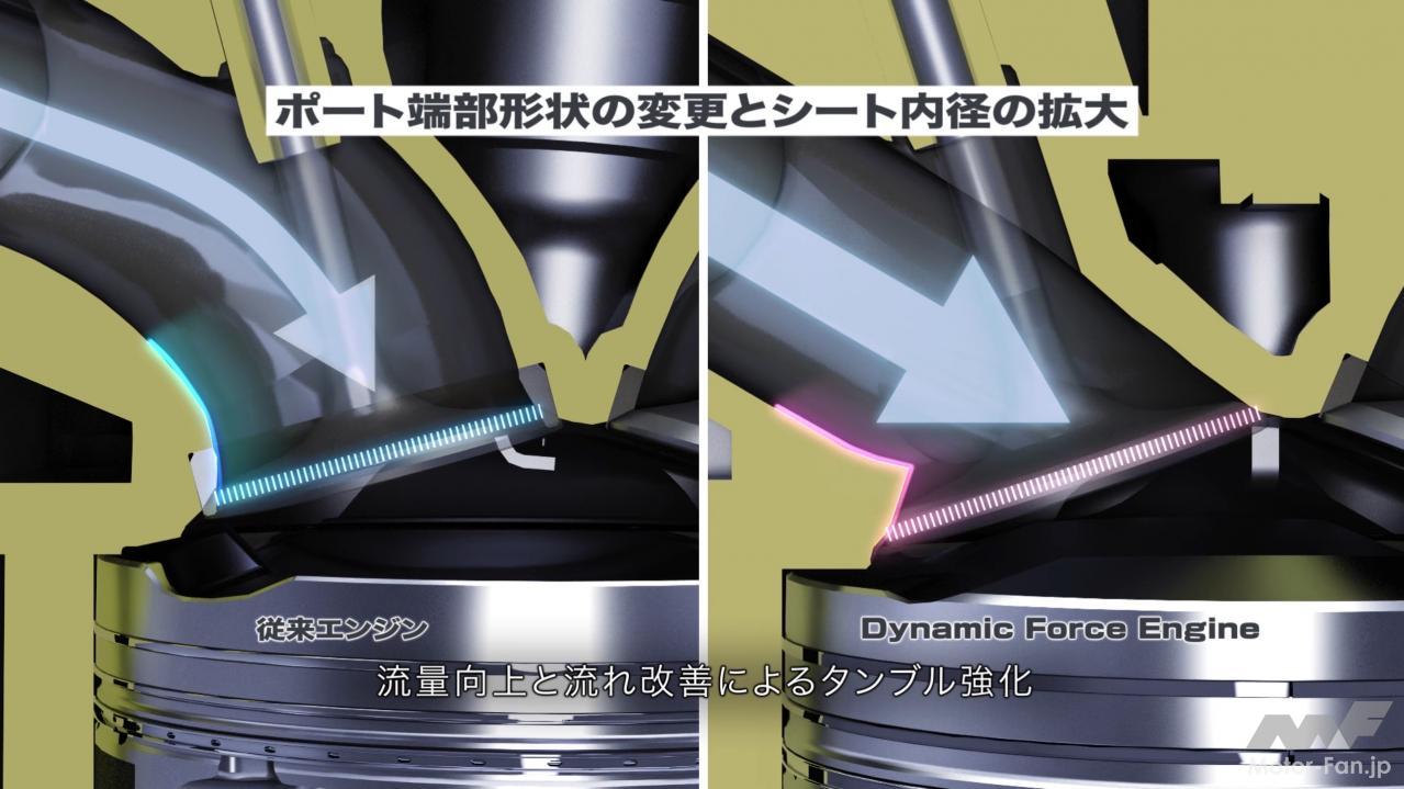 レーザークラッド式バルブシートはモータースポーツの世界で用いられてきたが、TNGAの世代になり、いよいよ市販車用エンジンにも展開されている。第一弾のA25A-FXSにおいて、その効果は「ストレートポートの実現」として発表された。