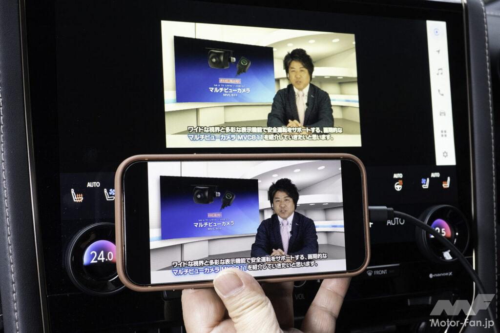 そしてさらに機能を拡張するのならば同社製の『ミラーリングHDMI変換ケーブル AV004(5500円/税込)』の併用がオススメ。本機のHDMI端子、USB端子とiPhone(USBタイプC端子搭載機)を接続するもので、iPhoneやiPadの画面をそのまま純正カーAVシステムの画面に映し出せる。さまざまなアプリの表示が車載画面で見られるようになり、地図アプリなどについては横画面表示にも対応する。