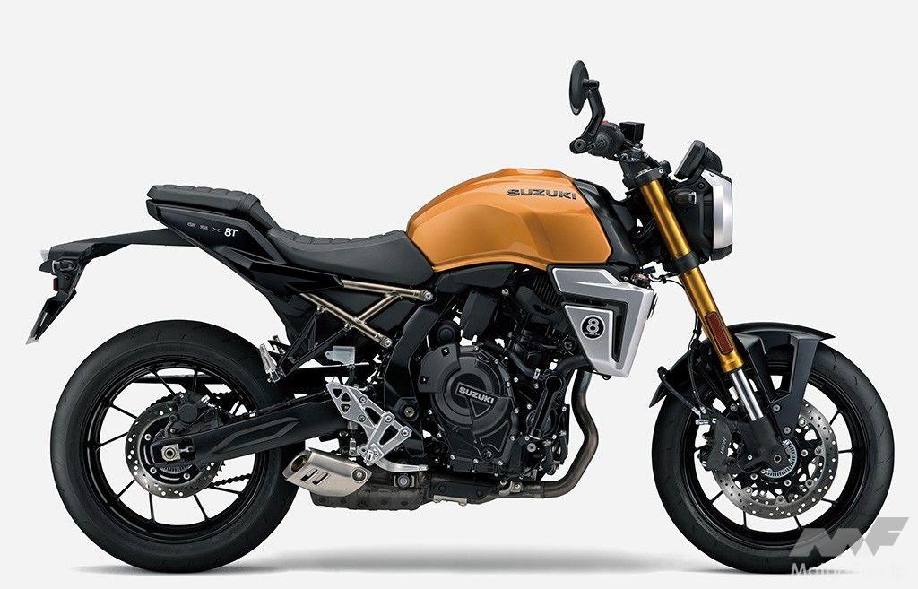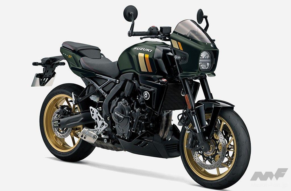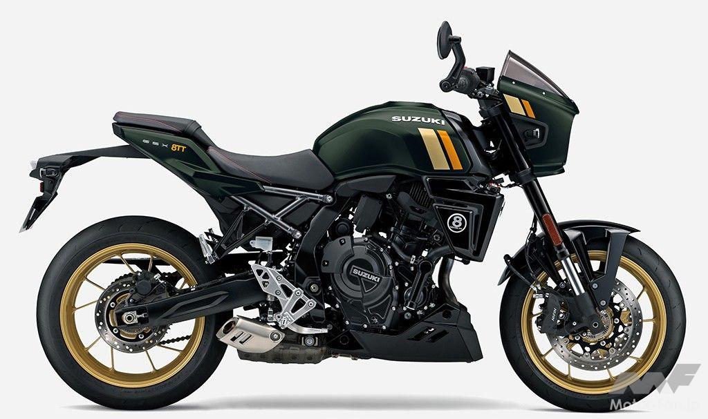 GSX-8T、GSX-8TTは、スズキの過去の名車に着想を得たデザインと、現代の技術を融合したネオレトロのストリートバイクである。