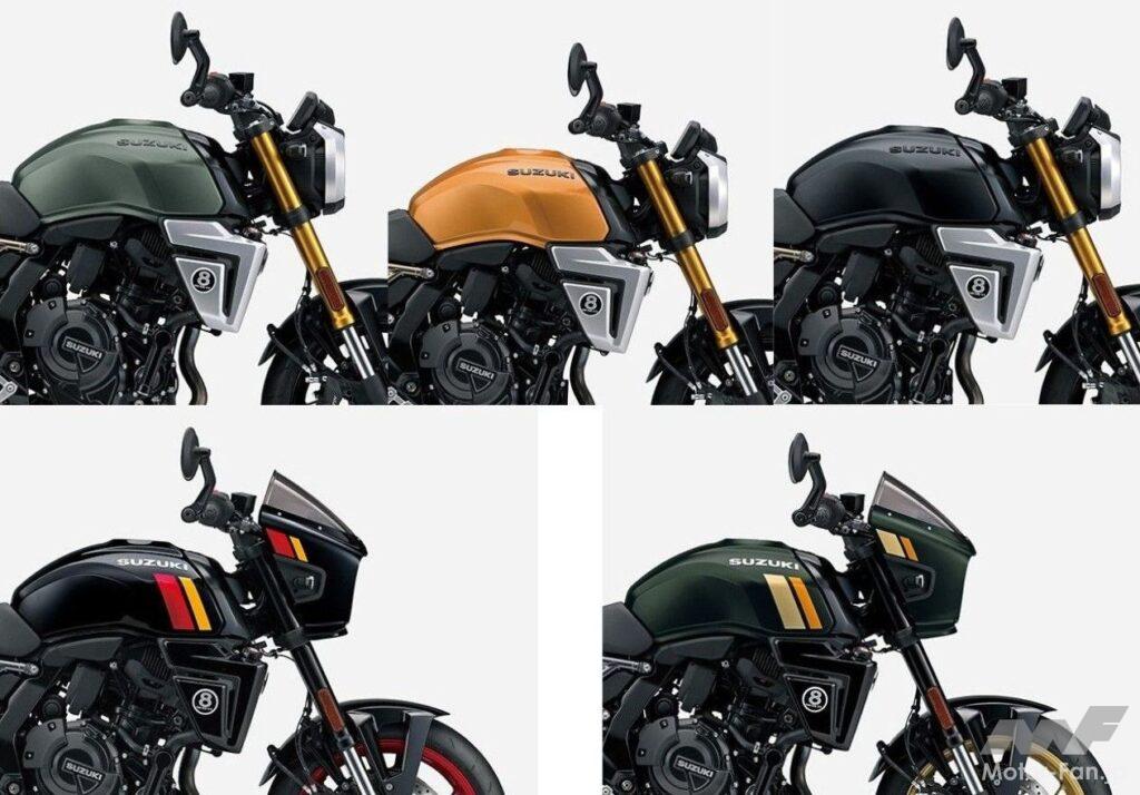 GSX-8TTはヘッドライトカウルとアンダーカウルを装備し、1970年代のロードレーサーをイメージ。