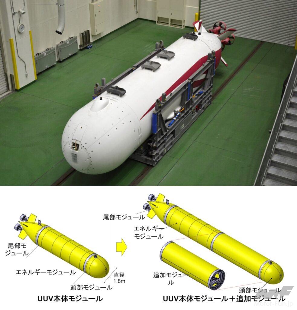 また、防衛装備庁では「長期運用型UUV」という大型UUVの研究・開発も行なっている。こちらはモジュール構造を採用し、航行に必要な主要構成部分のみで全長10m程度、任務遂行に必要なさまざまな機能を搭載した追加モジュールを加えると全長16m程度にもなる。文字通り「長期運用」を目的としたもので、AI(人工知能)による自律航行で長距離・長期間の任務を遂行する。広い海洋で、有人アセット(潜水艦など)に替わって警戒監視や観測任務を遂行することが考えられている。