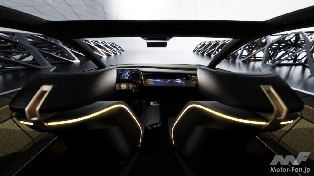 全長×全幅×全高:4845mm×1900mm×1500mm ホイールベース:2900mmだから、現行スカイライン(全長×全幅×全高:4810mm×1820mm×1440mm ホイールベース:2850mm)とほぼオーバーラップする。床下にバッテリーを搭載するから全高はやや高いが、魅力的で流麗なプロポーションをしているのは間違いない。