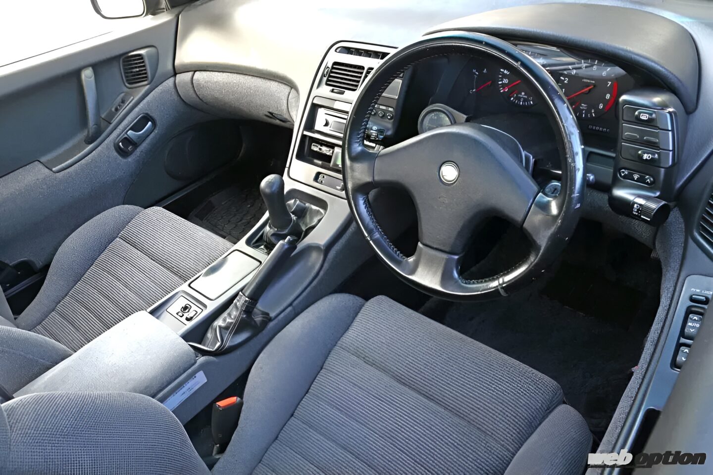 ホイールは、「このスタイリングが好きだから、ずっと17インチなんです」というピカピカのインパルRS。一度バラバラにしてからボルト1本1本磨き直し、“RS”のステッカーも作り直したというほど思い入れのあるアイテムだという。当時物のホイールに合わせるタイヤは、最新のミシュラン・パイロットスポーツだ。