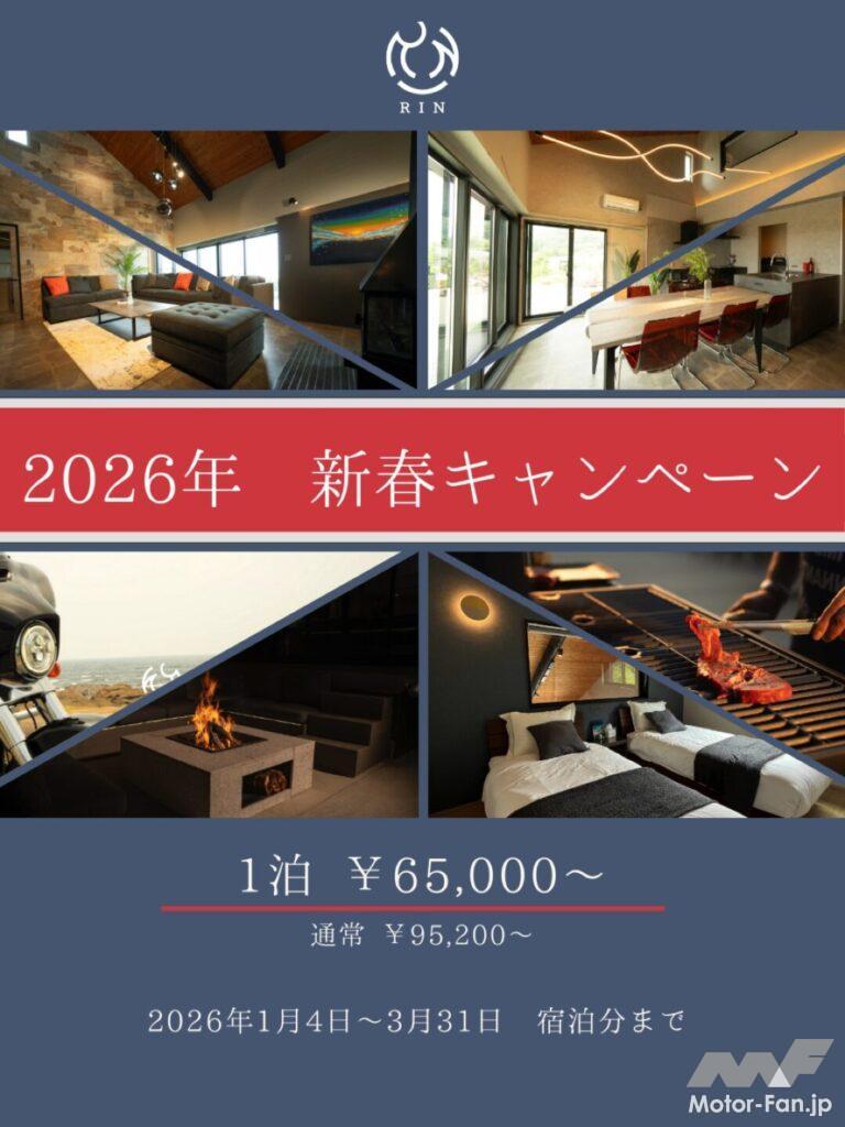 千葉県鴨川市に、バイカー専用・1日1組限定の貸し切りヴィラ「RIN」がオープンした。走りを愛する大人が心からくつろげる拠点をコンセプトに、屋根付き駐車場やバイクフォトスポット、焚き火やBBQを楽しめる空間を用意。海まで徒歩10分という立地も魅力で、ツーリングの終着点にも中継地点にもなる存在だ。仲間と語らい、静けさに身を委ねる時間を提供する、ライダーのための特別な隠れ家となっている。