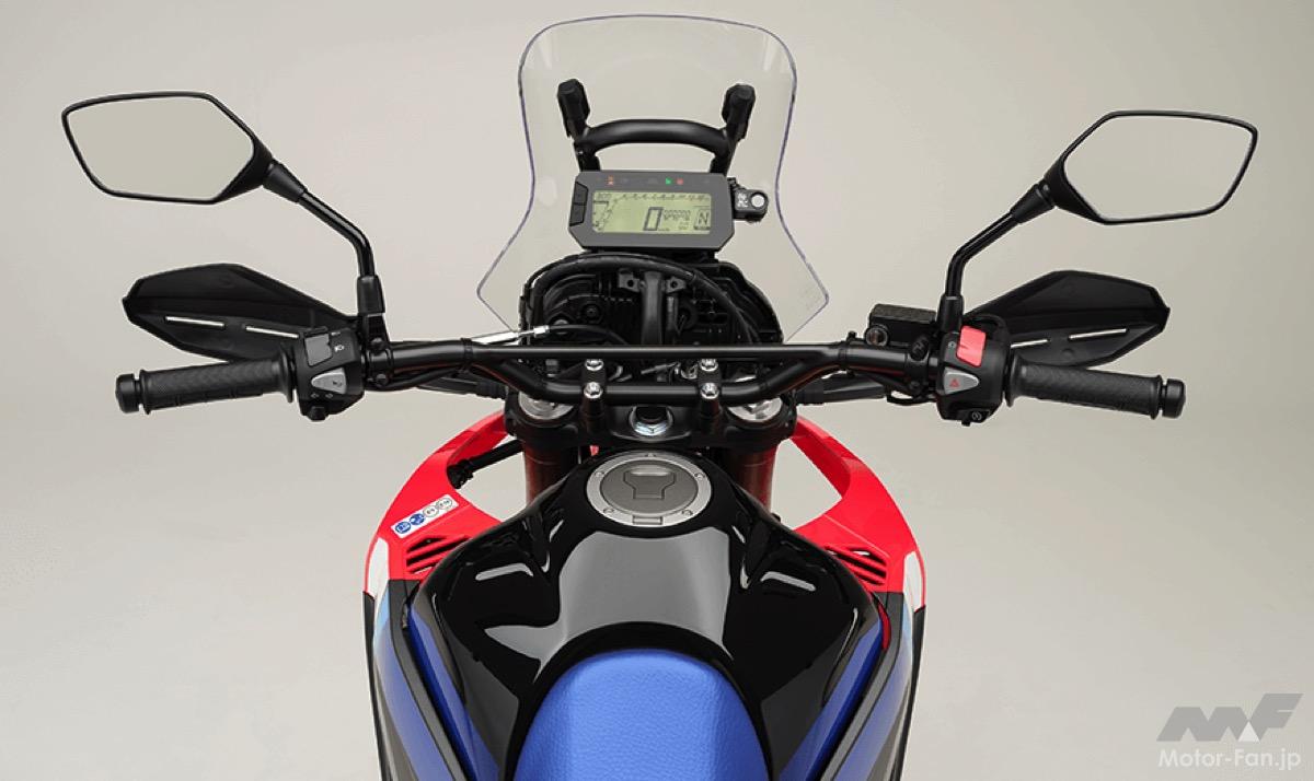 また、シート形状の変更で足つき性を向上させ、走行中の車体ホールド感も高めている。メーターにはギアポジション表示や燃費計を追加し、視認性も向上。ハンドルの絞り角を増やし、ステップ位置を後方に配置することで、操作性を高めている。