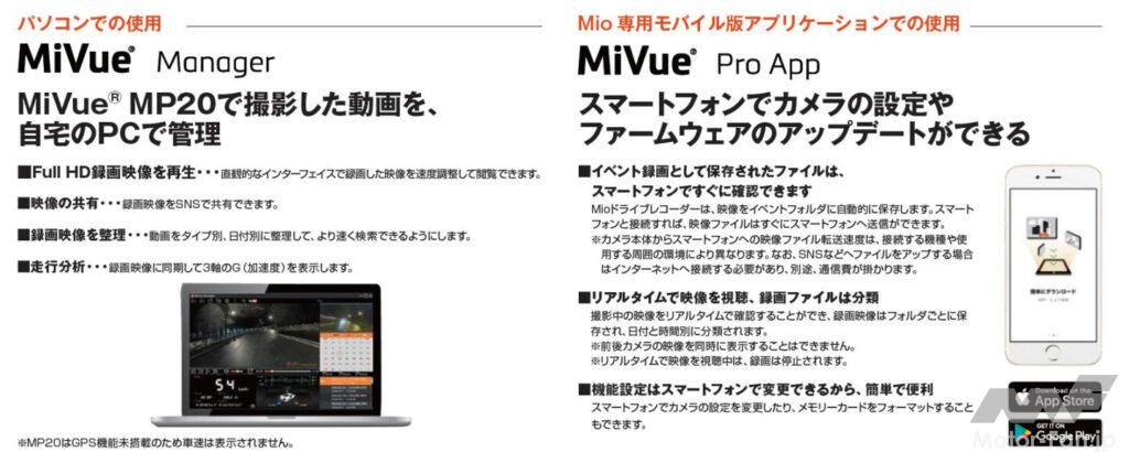 | ファームウェア更新機能 | 有(MiVue Proアプリで可能) |