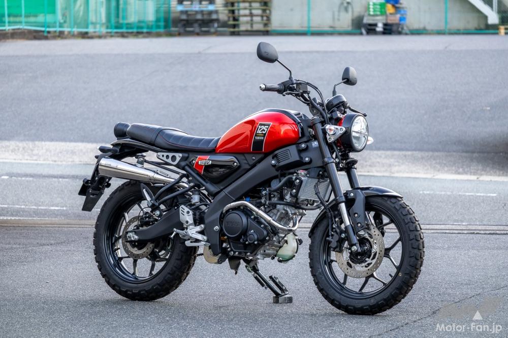 ヤマハXSR125 ABSをスクランブラースタイルに導くスタンダードなショートメガホンマフラー(下記参照)に、「フルアップタイプ」が新登場。エキゾーストポートからUターンし、ストレートにテールエンドまで続く、スッキリとしたシルエットに設計。軽快かつスクランブラーという印象を一層アピール。