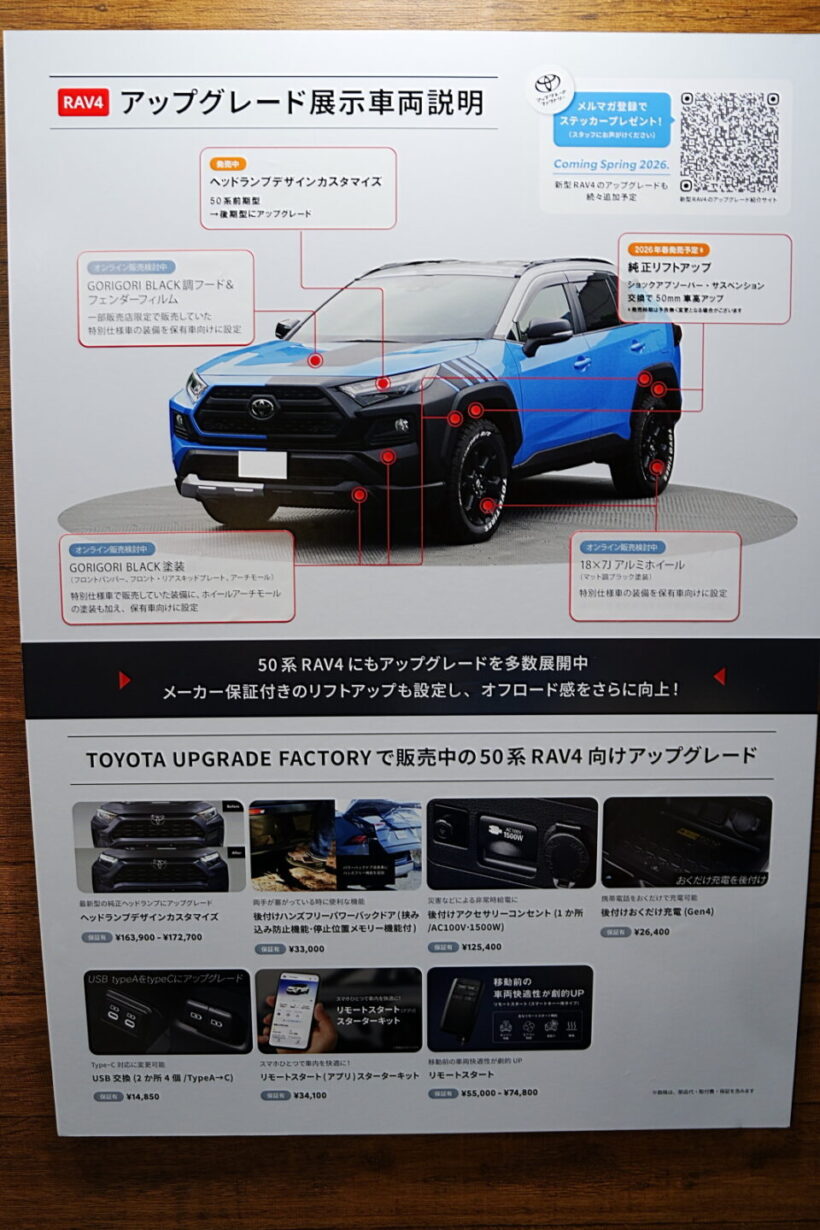 モーターショー RAV4の生みの親「豊田自動織機」に旧型RAV4(50系)が展示されてた意外な理由とは?【東京オートサロン2026】【写真・26枚目】 50系RAV4アップグレードファクトリー例のハーフ&ハーフ車両 RAV4 GR SPORT 用品装着車 RAV4アウトドアスタイルコンセプト この画像の記事を読む
