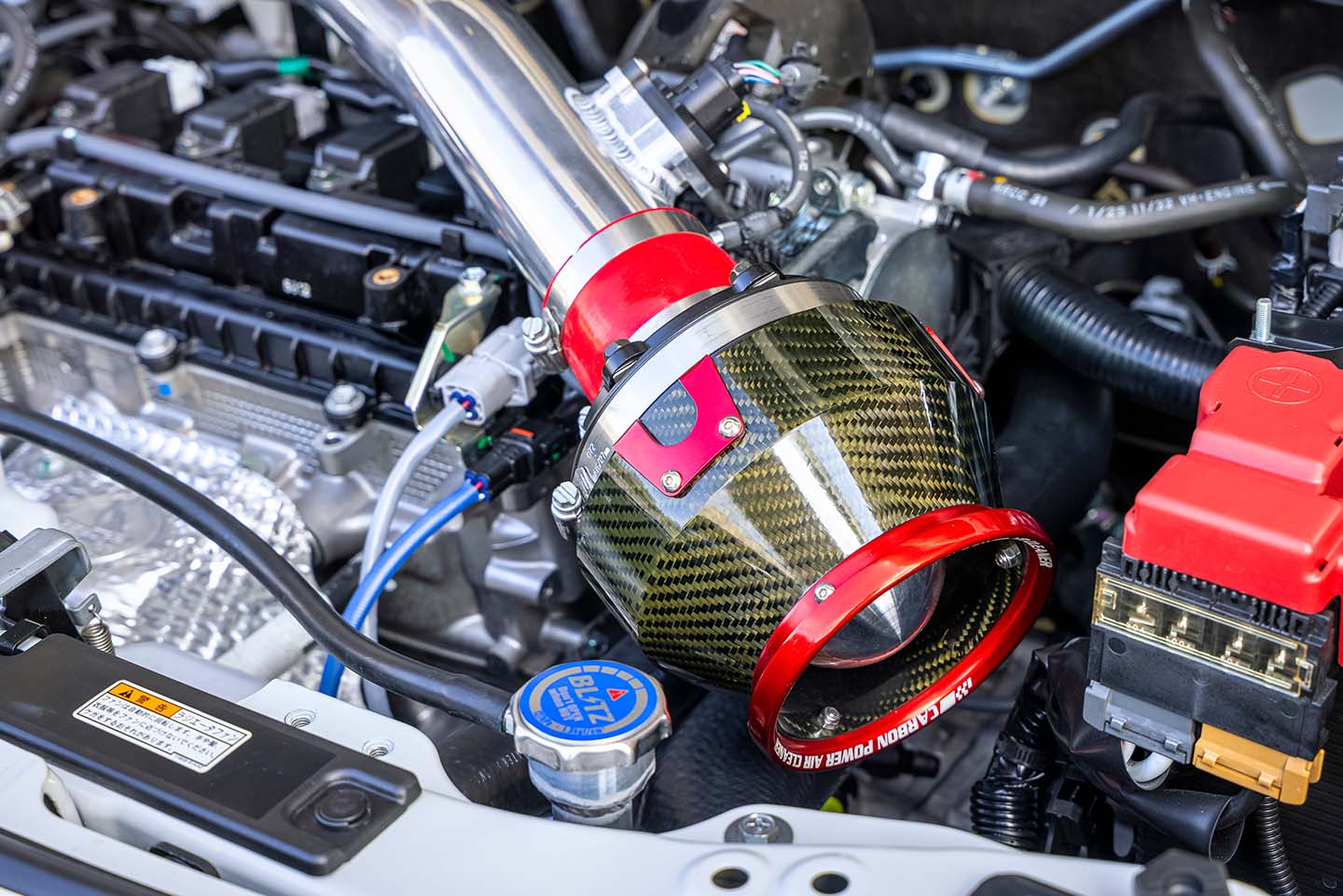 吸気系にはヒートシールド付きの『カーボンパワーエアクリーナー』とアルミ製『サクションキット』を採用。吸気温度の上昇を抑えつつ効率を高め、レスポンスを向上させている。加速時に響く吸気サウンドも、スポーツマインドを大いに刺激するポイントだ。さらに『スーパーサウンドブローオフバルブ』を追加すれば、アクセルオフ時の開放サウンドも存分に楽しめる。