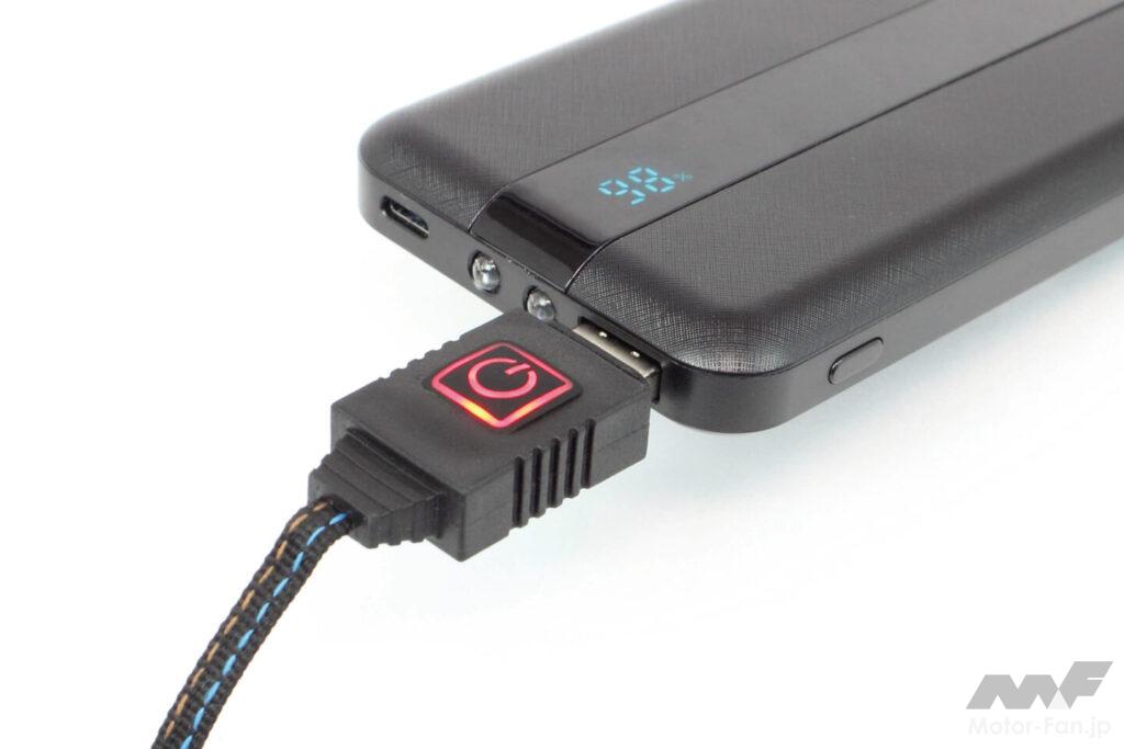 電源はUSB TYPE-C、およびTYPE-Aに接続するケーブルが付属しているが、このケーブルには温度設定コントローラーが装備されている。コントローラーにより5段階の温度設定が可能となり、温度レベルはLEDのカラーで確認できる。レッド:100℃、オレンジ:85℃、イエロー:75℃、グリーン:65℃、ブルー:55℃で、コントロールボタンの長押しで操作。コントローラー部も小さくて邪魔にならない。
