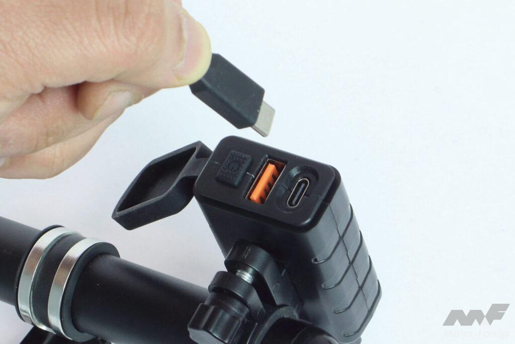 - 対応機種:汎用、グリップ幅(全長):100mm以上、グリップ直径:φ32mm〜φ35mm、USBポート付き車両はPD対応18W〜MAX30W(12V 1.5A以上)、モバイルバッテリーはPD対応18W〜MAX30W(12V 1.5A以上)、USB TYPE-C