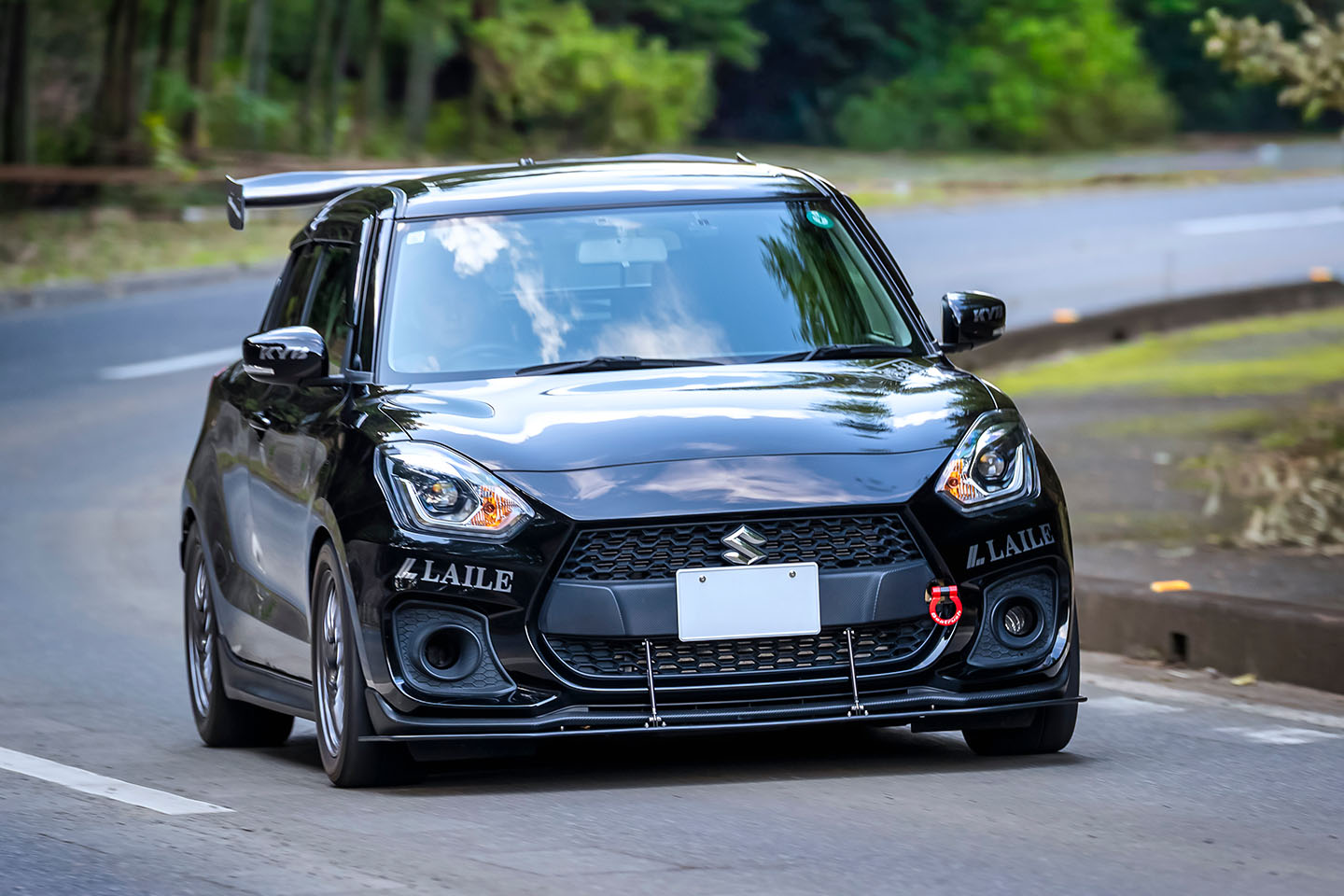 「純正形状らしく柔らかめでロールは大きいけど、コーナーで荷重をかけてもリヤの内輪が浮かず、しっかり接地する。だから安心して踏んでいける。硬い足のスイフトで感じるような怖さがない。サーキットでも十分楽しめるし、想像以上に速く走れるよ。ストリートでの乗り心地も良好。不快な突き上げがなく、普通に使える。これなら奥さんや子供にも気づかれないんじゃないかな(笑)」。