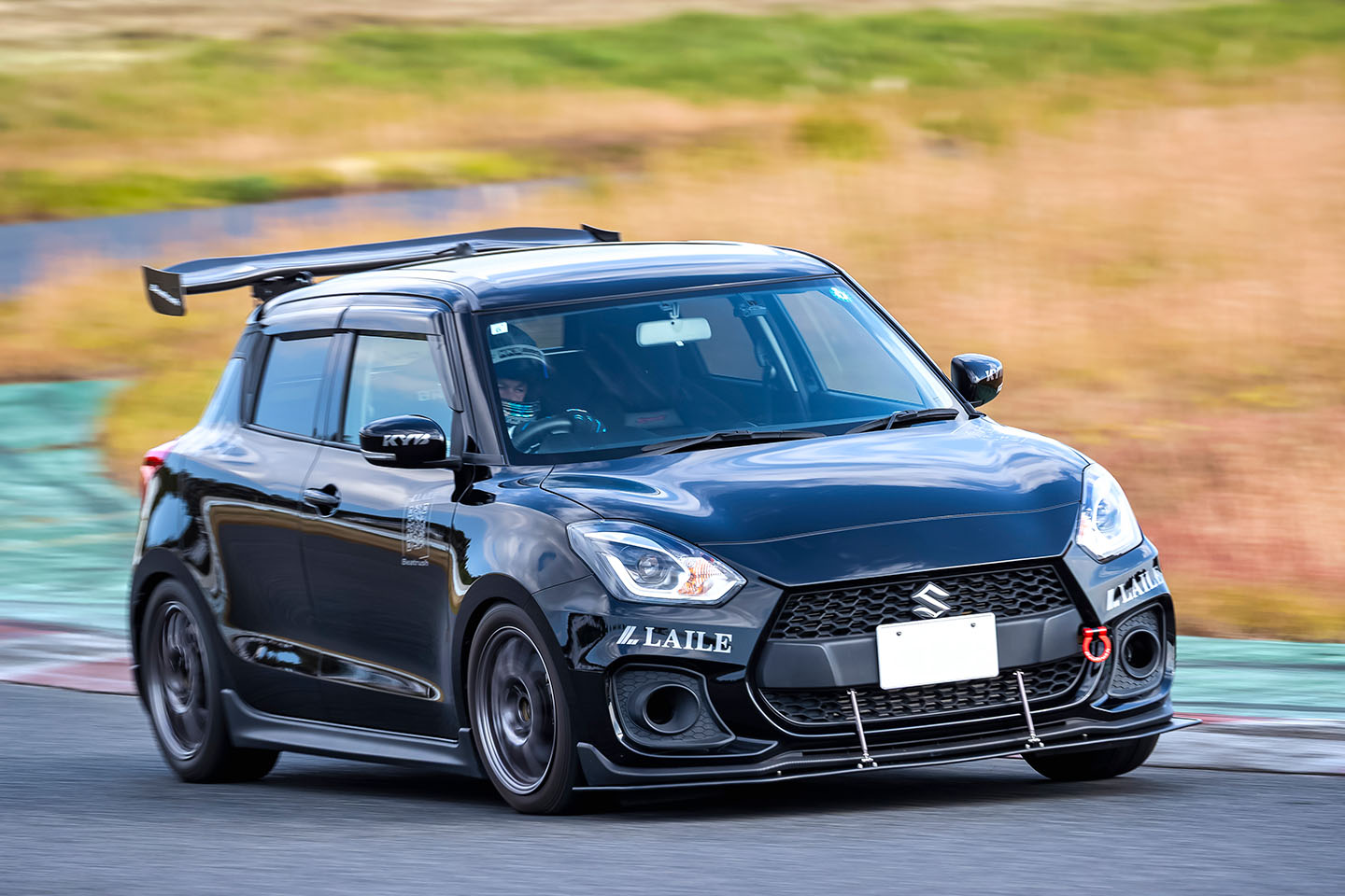 「純正形状らしく柔らかめでロールは大きいけど、コーナーで荷重をかけてもリヤの内輪が浮かず、しっかり接地する。だから安心して踏んでいける。硬い足のスイフトで感じるような怖さがない。サーキットでも十分楽しめるし、想像以上に速く走れるよ。ストリートでの乗り心地も良好。不快な突き上げがなく、普通に使える。これなら奥さんや子供にも気づかれないんじゃないかな(笑)」。
