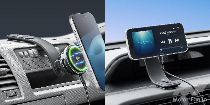 iPhone12シリーズ以降に搭載されている「MagSafe」対応型で、スマホを素早く取り付け、取り外しできて使い勝手抜群。製品に付属しているメタルリングを利用すればMagSafeに対応していない旧タイプのiPhoneやAndroidスマホなどにも対応する。
